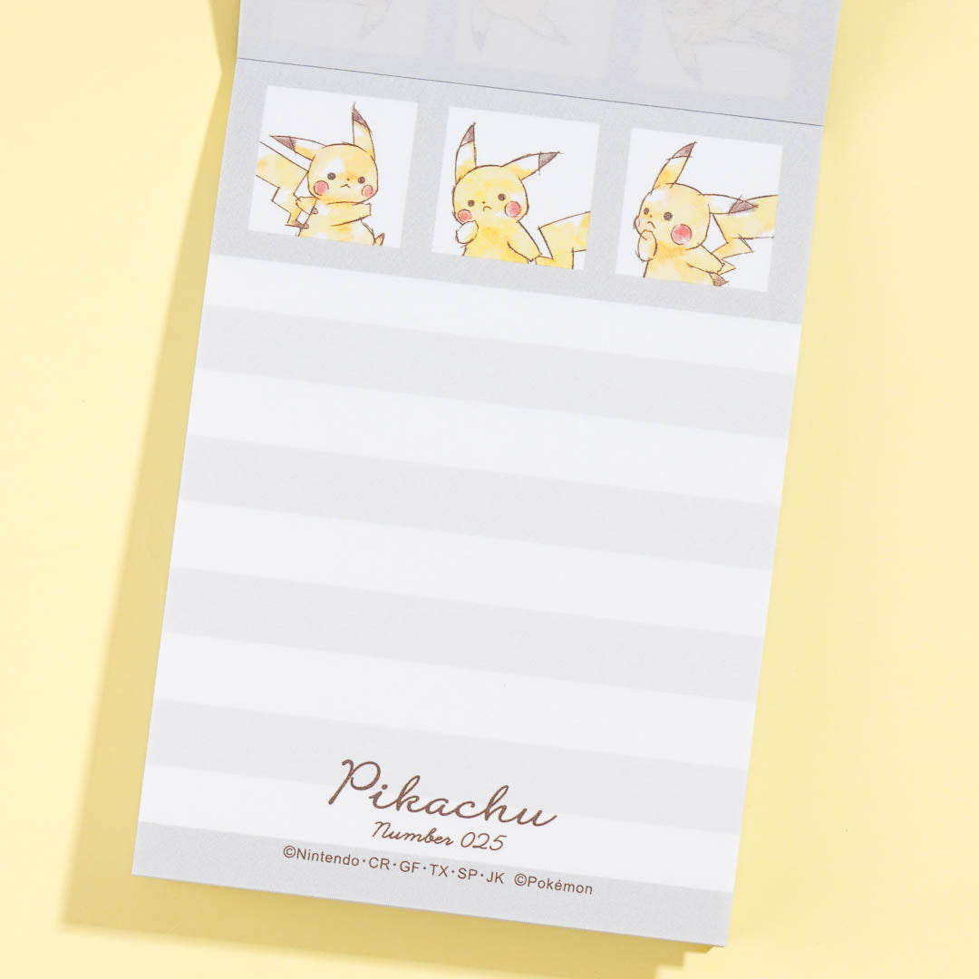 Write your short messages on this kawaii memo pad! The mini-sized sheets feature watercolor-style prints of Pikachu as the Number 025 Pokemon.