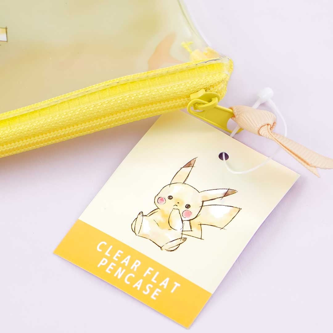 • A clear pencil pouch featuring the chubby rodent Pikachu