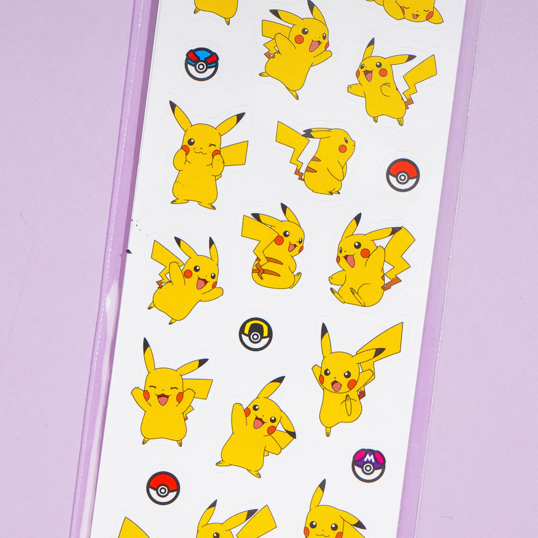 Use this sheet of clear stickers to embellish your notebook covers! These stickers feature Pikachu and a bunch of Pokeballs. Add them to your sticker collection.