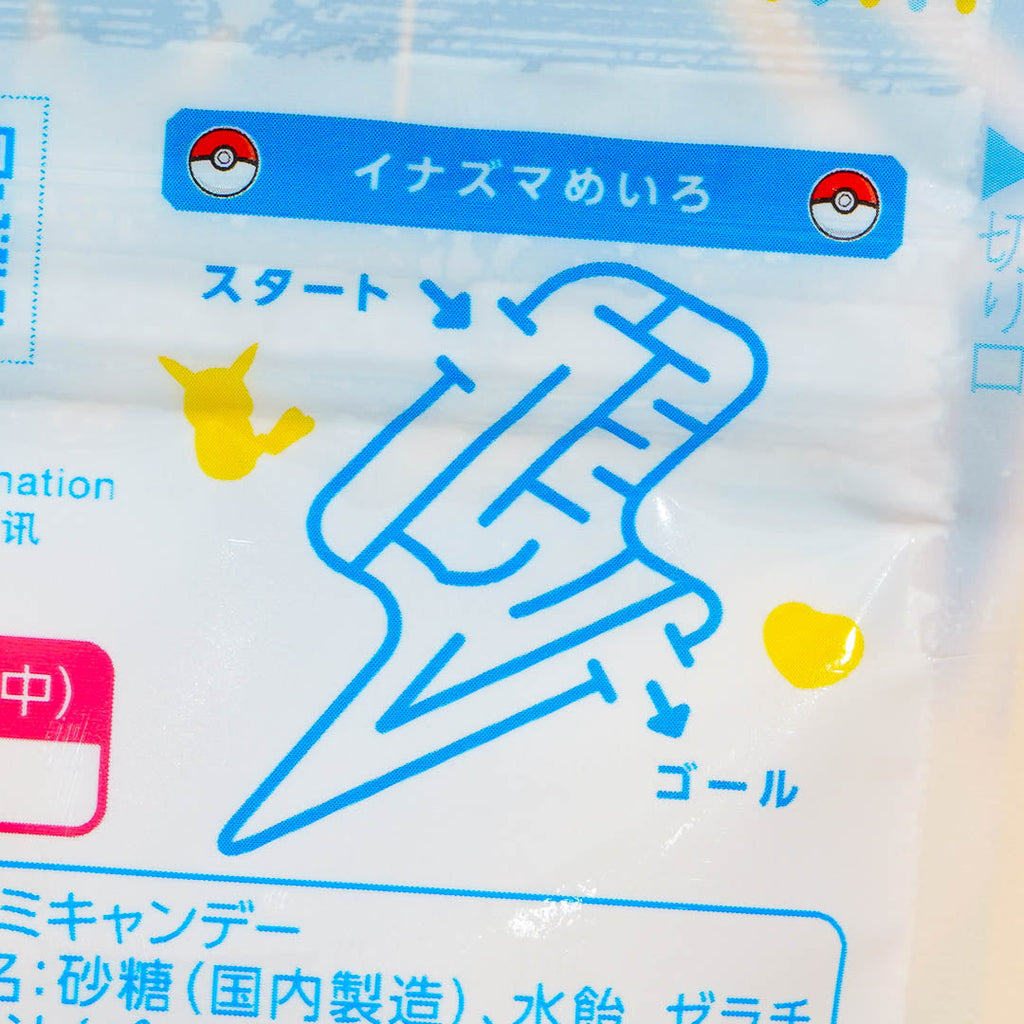 Have fun chewing these fruit-flavored gummy candies! They're shaped like Pikachu from Pokemon and are made with real fruit juice. The autumn and winter-themed limited edition packaging features Pikachu and even has a mini maze game that you can play with while eating!
