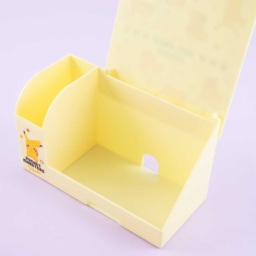 Organize your pens, erasers, and everything on your desk with this cute desktop organizer! It's decorated with prints of Pikachu making different poses. You can use the slanted part of the organizer as a smartphone stand. This stand even has a cord hole for your phone cable.