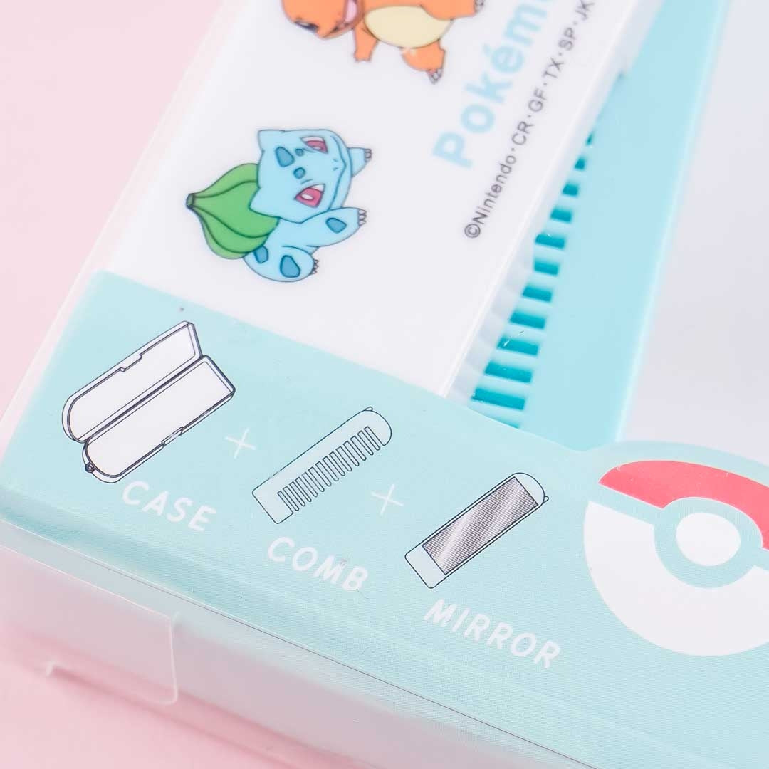 Bring this cute compact comb set anywhere you go for quick touch-ups! The set comes with a comb, a mini-sized mirror, and a case with prints of Bulbasaur, Charmander including Squirtle. It has a detachable ball chain so you can easily attach it to your favorite purse.