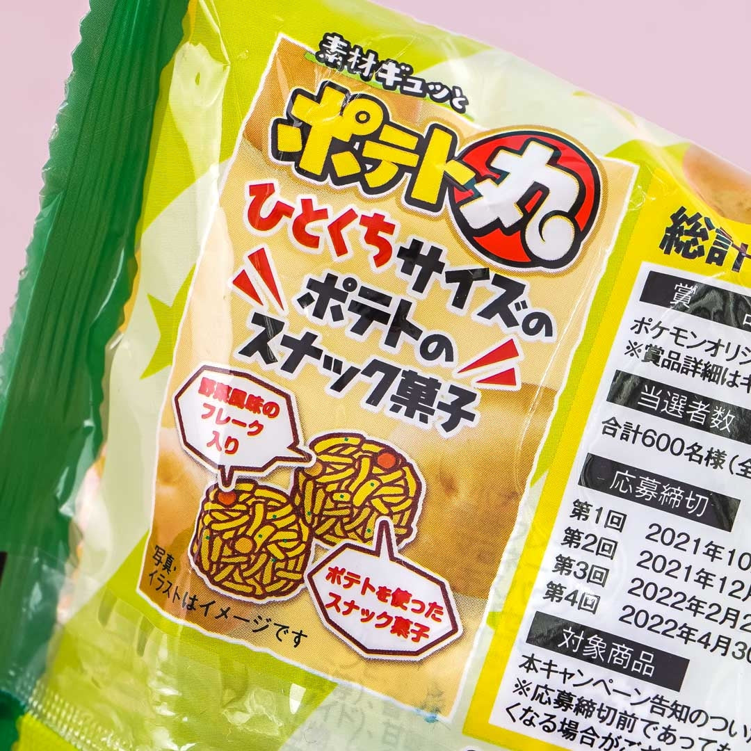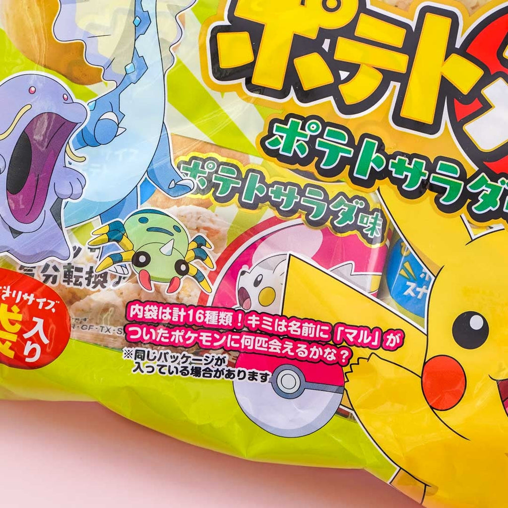 Share this big bag of salad-flavored potato snacks shaped like balls with your friends! It features prints of different Pokemon. This bag has six small packs for you to distribute to your buddies.