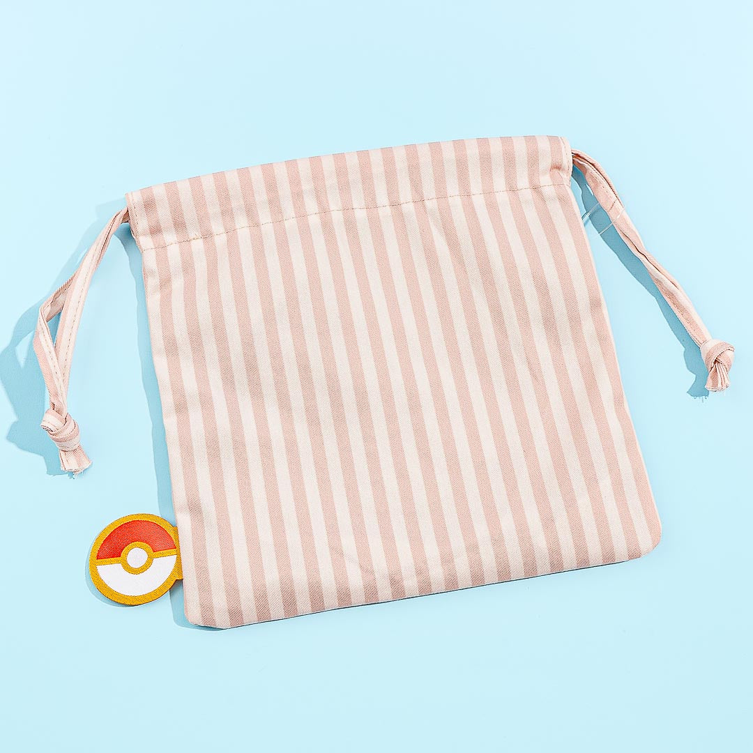 This kawaii pouch is decorated with stripes and a cute embroidery of Eevee, a popular Pokemon! Store your mints, loose change, and other knickknacks inside. Don’t forget to pull the drawstrings to secure your items inside!
