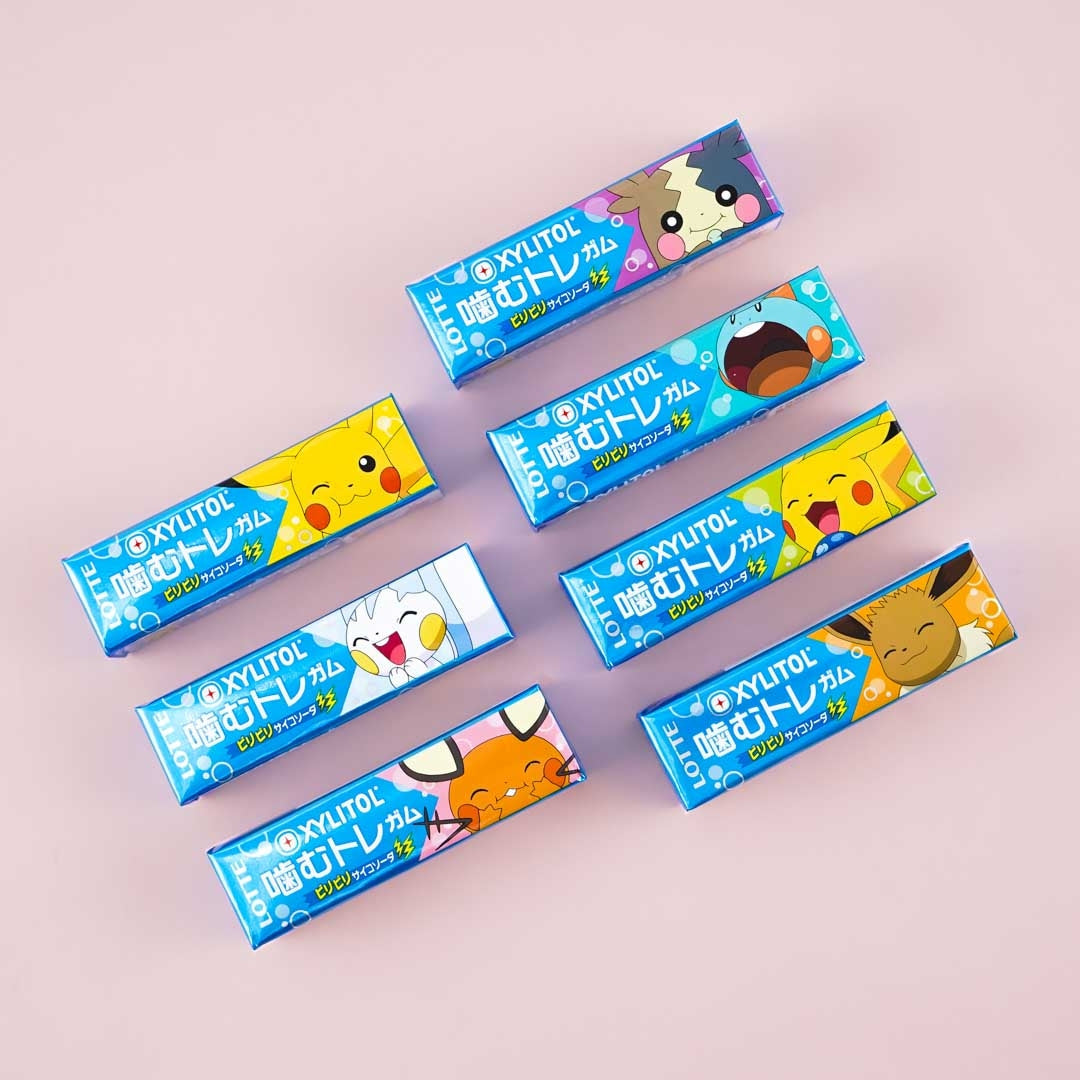 Stay fresh with this pack of soda-flavored xylitol gum! It features a cute print of a Pokemon. Surprise yourself with a package design randomly selected from a set of seven when you order!