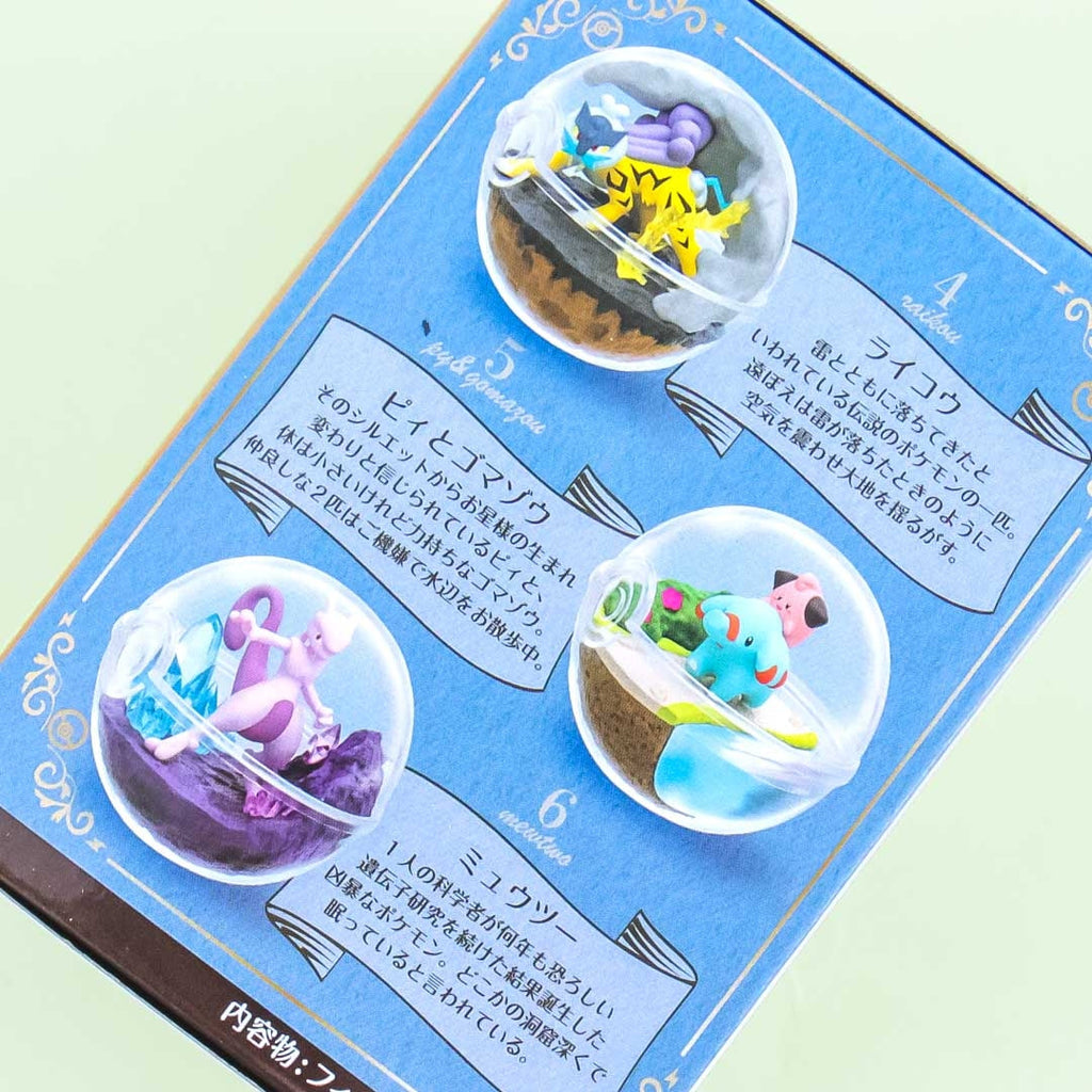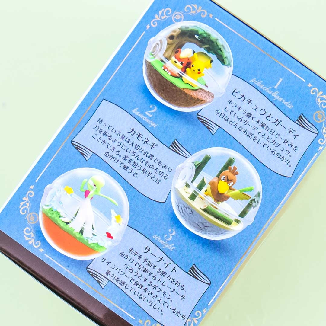 “Pokémon Terrarium Collection 7” miniature is the seventh series that features different pocket monsters or pokémon from the Galar region inside clear acrylic terrariums shaped like a pokéball! The set includes popular characters like Pikachu and Growlithe, Farfetch’d, Gardevoir, Raikou, Clefairy and Phanpy; and Mewtwo. Each replicated mini item is highly-detailed and comes with free chewing gum. This series has six kawaii miniatures that you can collect to complete this set of Pokémon pokéball-shaped terrariums! Re-Ment miniatures are popular keepsakes in Japan because of their cuteness and meticulous attention to detail. Each package comes blind-boxed so every order is a wonderful surprise!