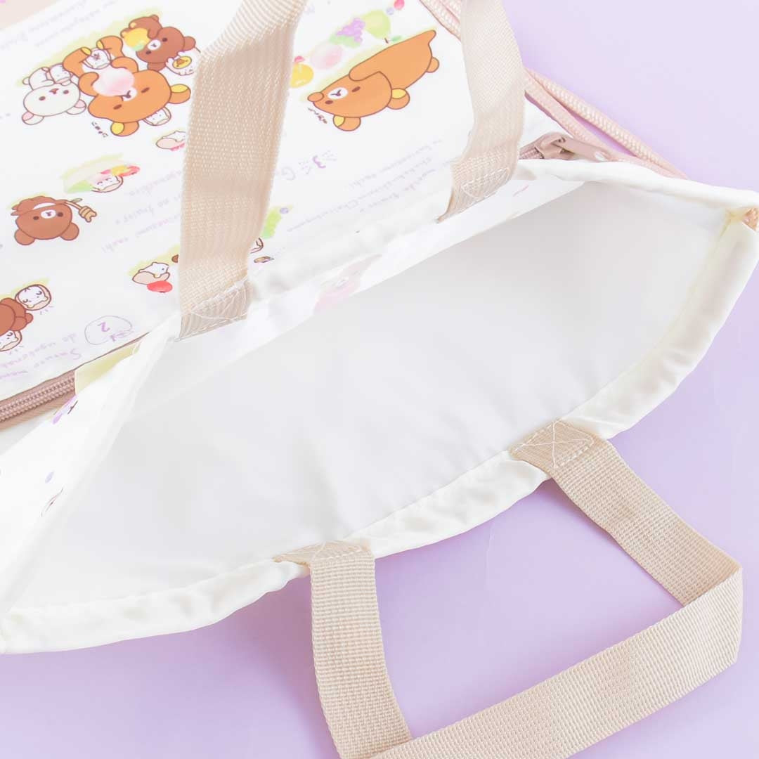• A kawaii multi-strap bag covered in prints of Rilakkuma and his friends eating fruits
