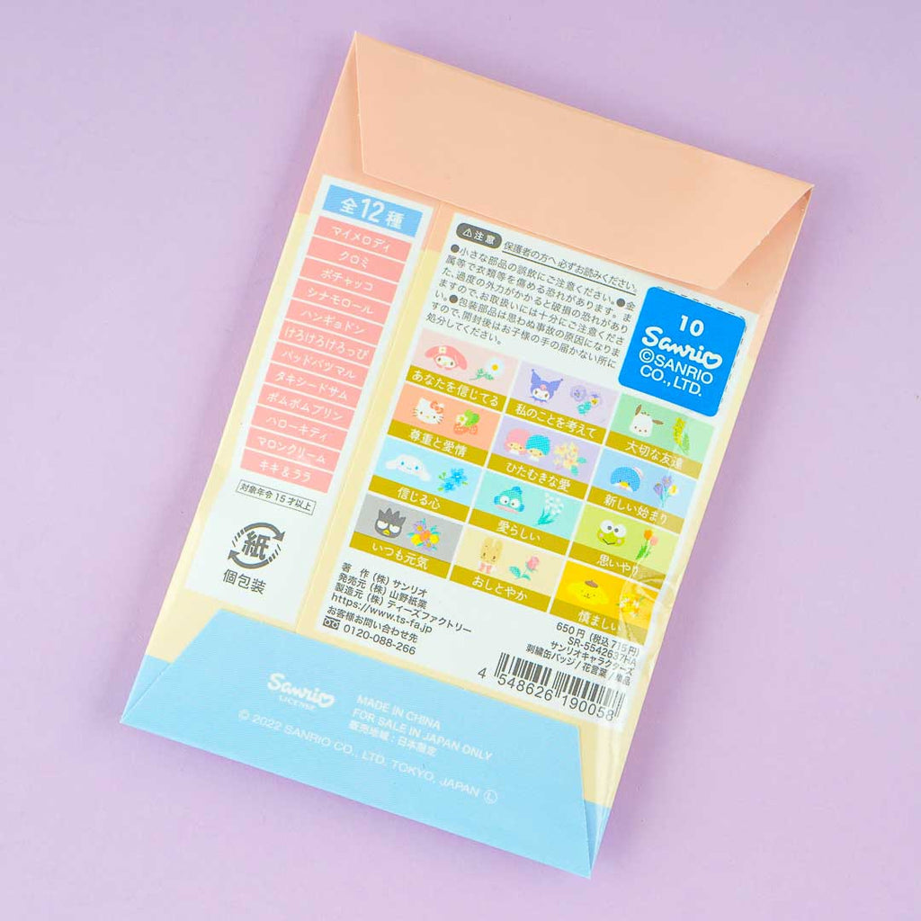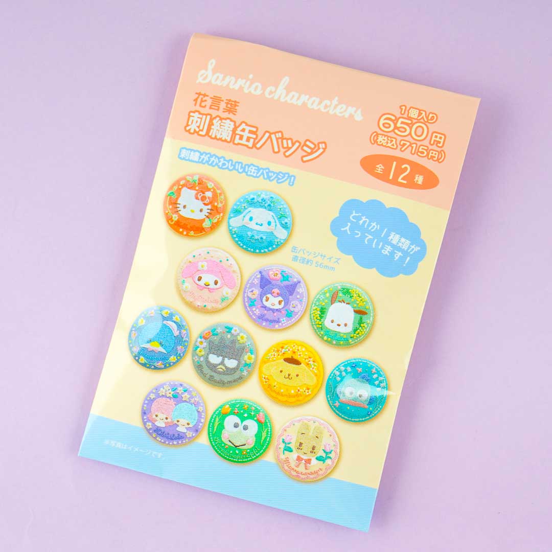 Pin this super cute can badge on the lapel of your jacket to add a dose of cuteness! This pin is decorated with an embroidered design featuring a random Sanrio Characters cutie and flowers.