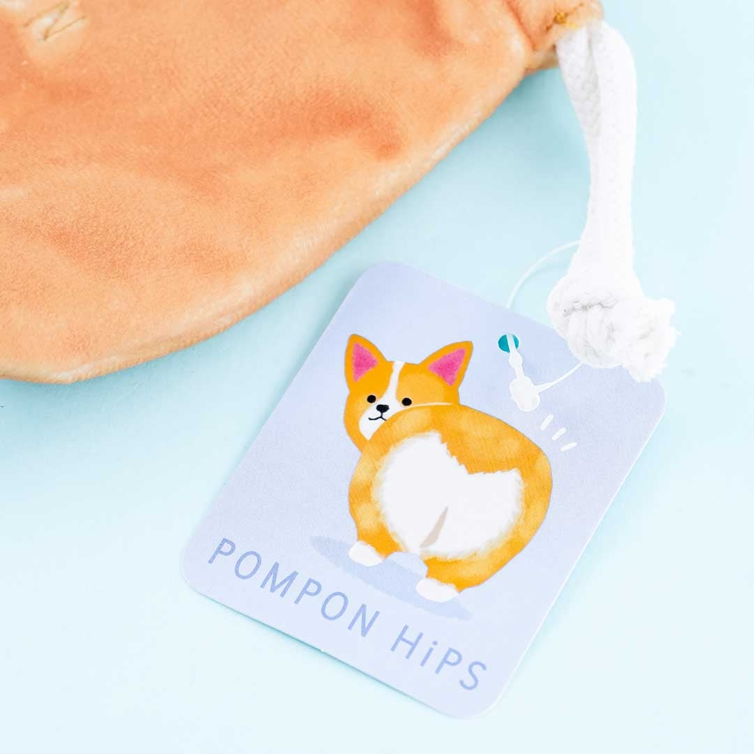 A super kawaii drawstring pouch designed to look like a corgi butt