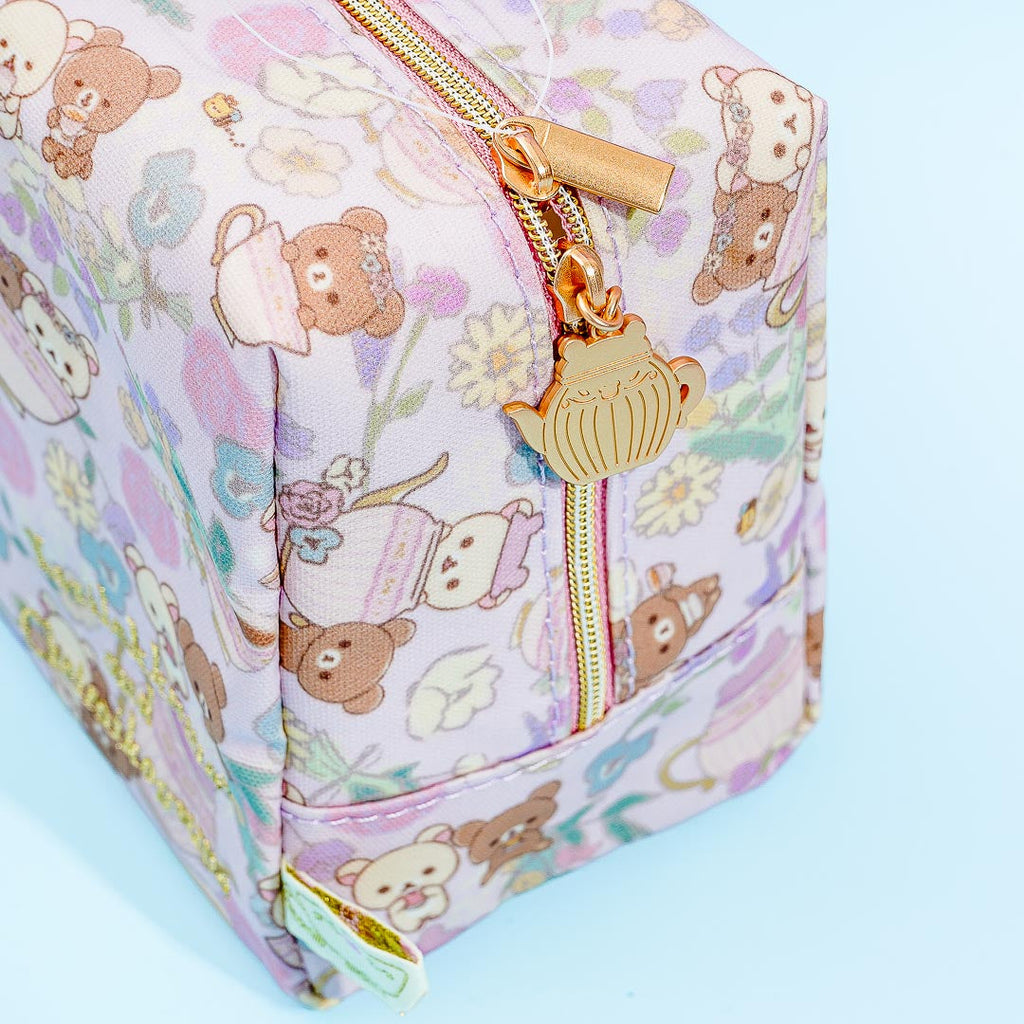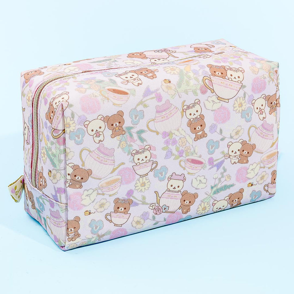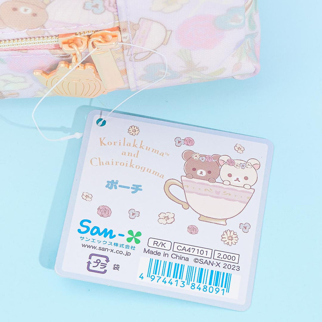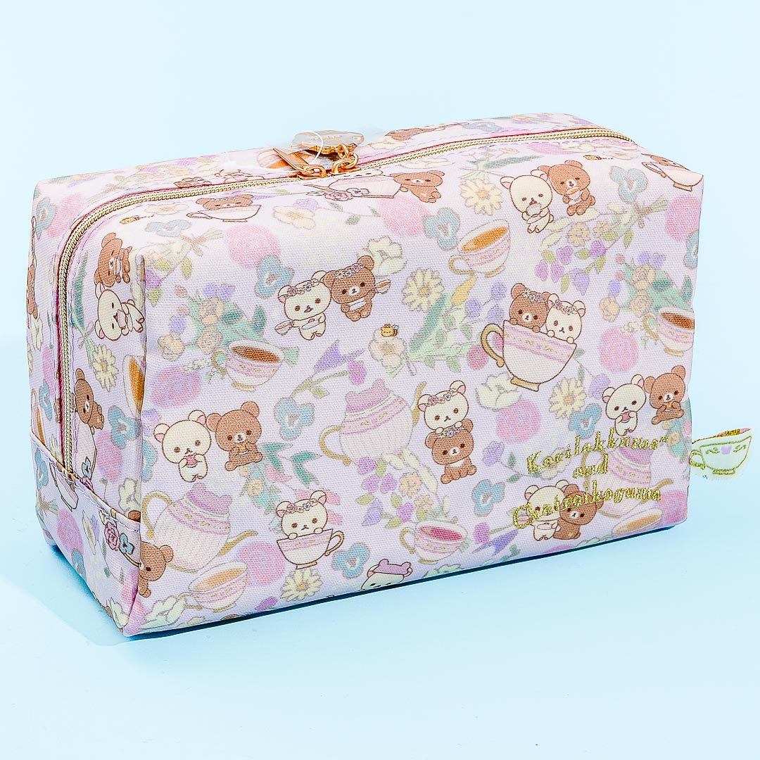This kawaii pouch is filled with floral prints of Korilakkuma and Chairoikoguma having tea. It features a calming matte color to match the "Rilakkuma KoriKogu Flower Tea Time" theme. This pouch has a large capacity and double zipper closure so you can use it for your cosmetics and other travel essentials!