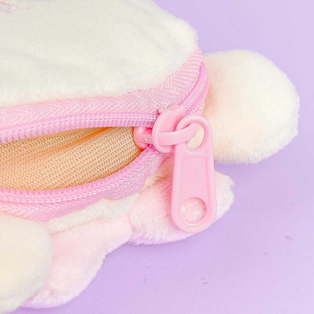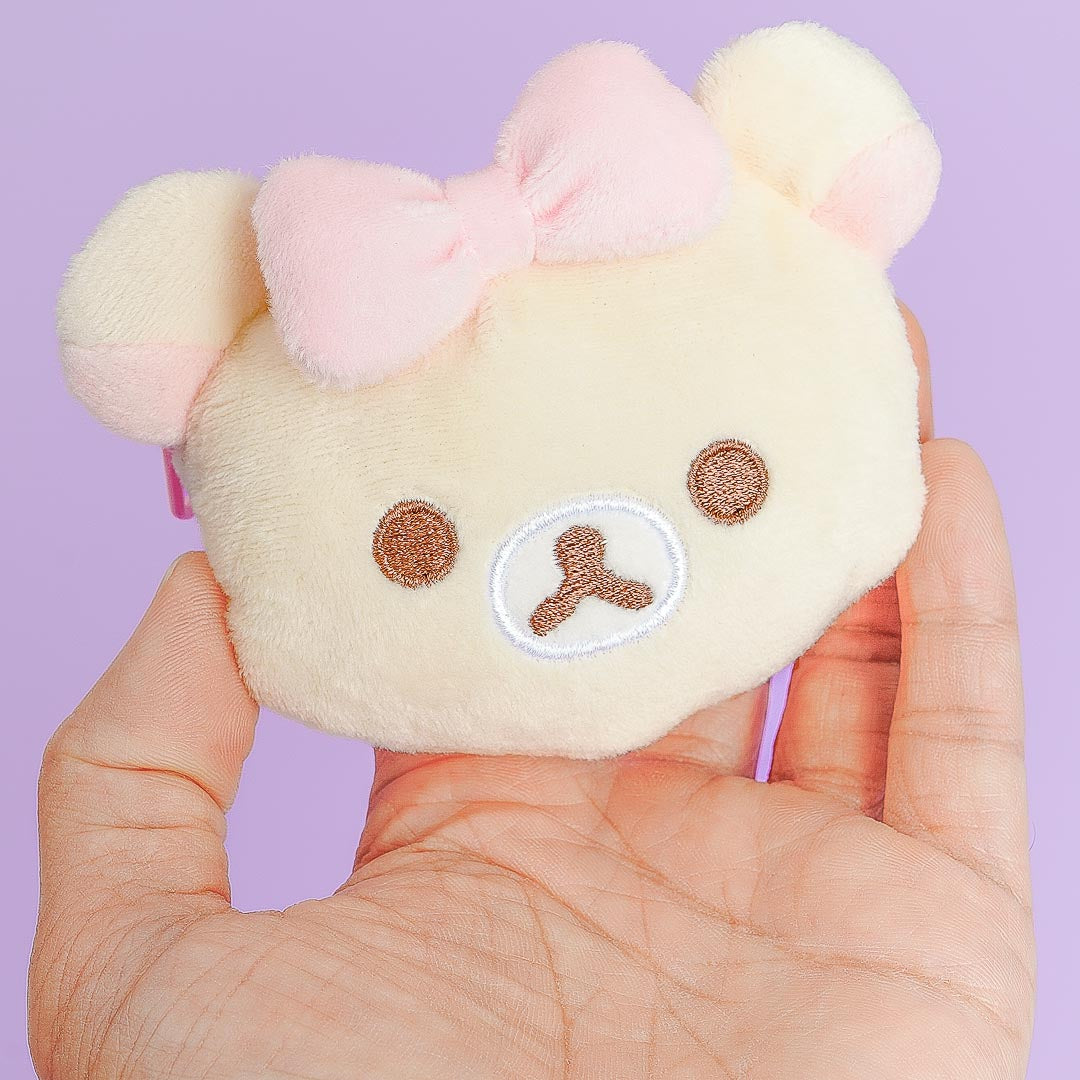 This cute and fluffy Korilakkuma purse has a ribbon on its head! Store your loose change inside this kawaii purse. It has a zipper closure to keep your things safe and secure.