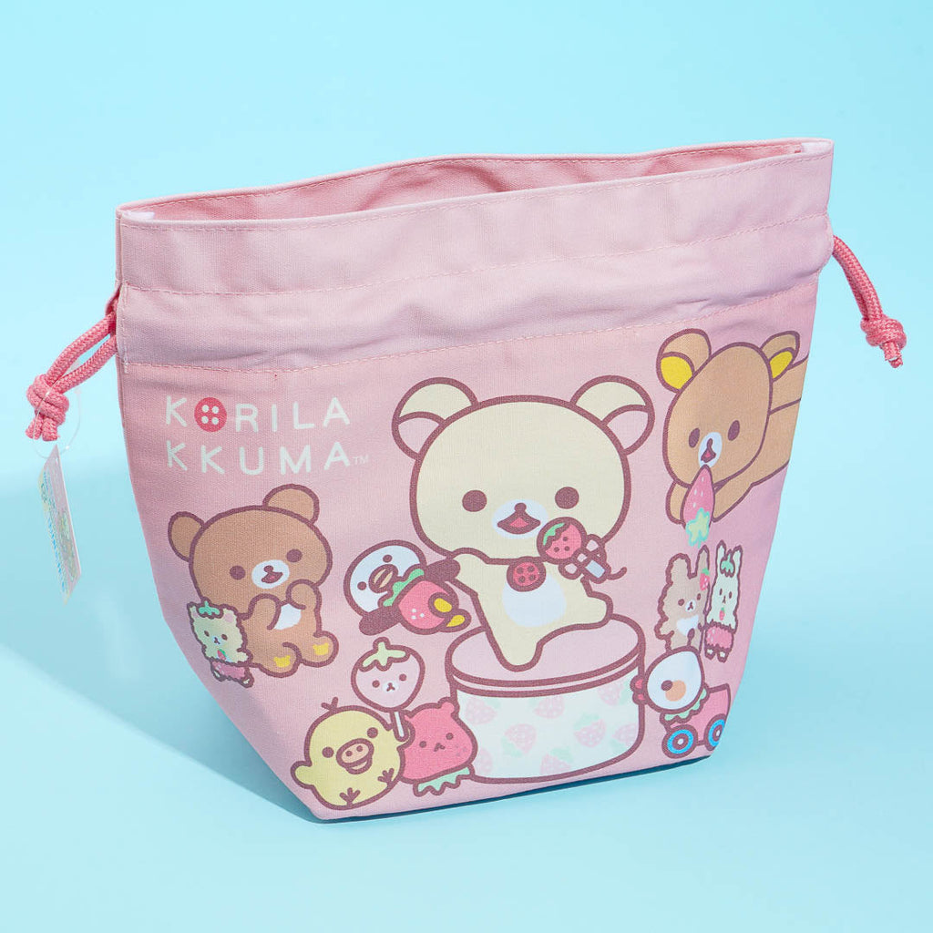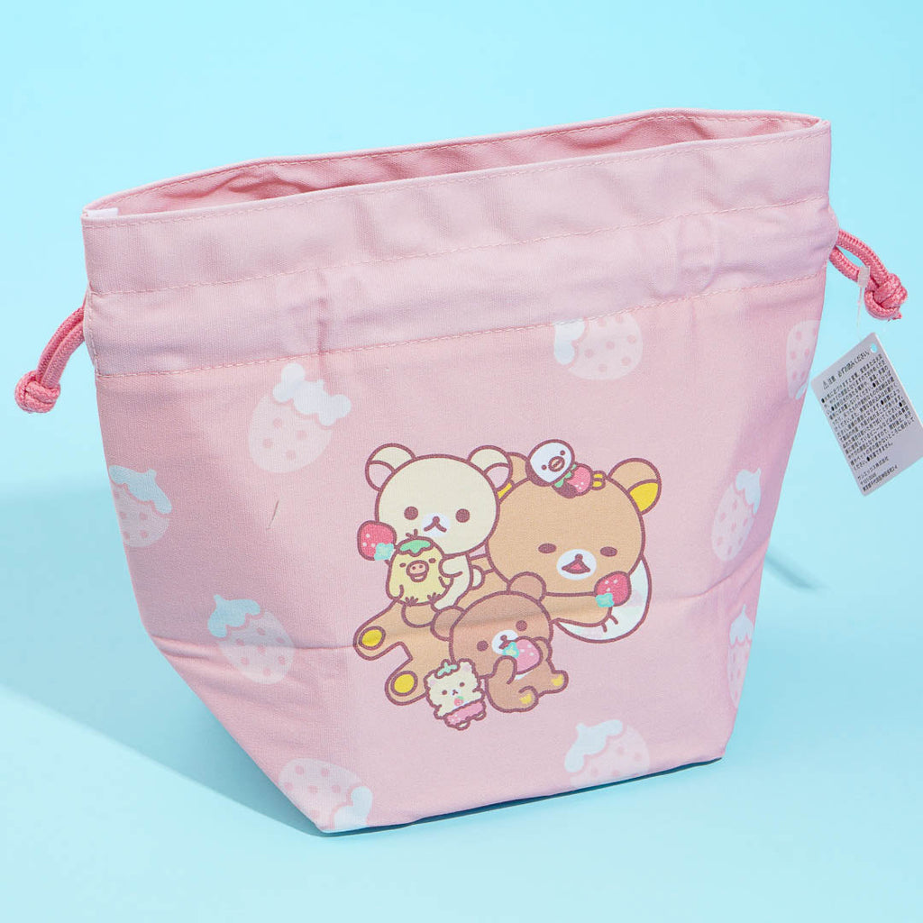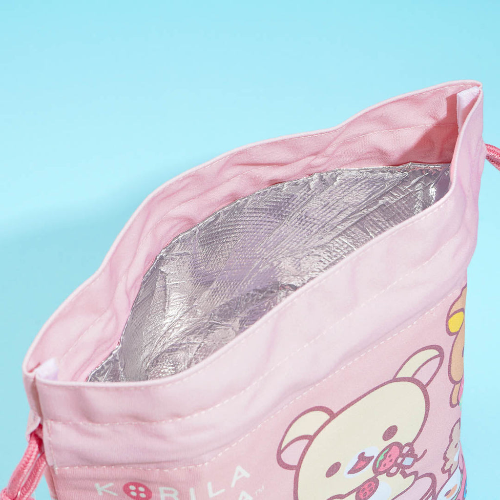 Keep your packed lunch fresh by placing it inside this super cute bag! It showcases a print of Korilakkuma and friends enjoying strawberries. This bag features an insulated aluminum lining and a drawstring closure.