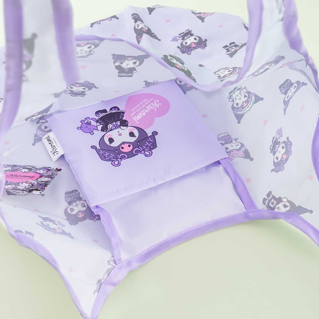 Head to the supermarket with this super kawaii eco bag. It's covered in prints of Kuromi wearing different cute outfits! You can fold up the bag and store it in its inner pocket when you no longer need to use it.
