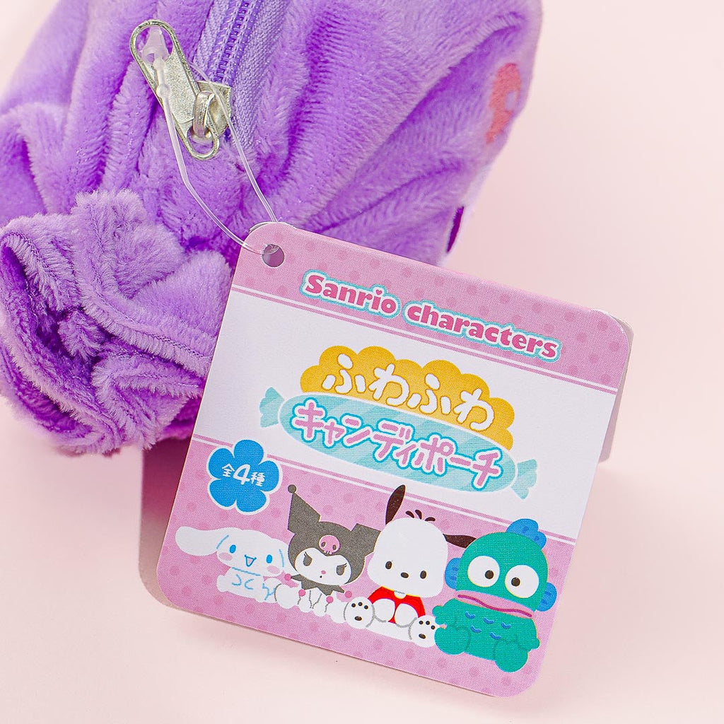 Use this candy-shaped pouch to store your charms, bracelets, and other things. It features an embroidered decor of Kuromi's face! This zippered pouch is great for storing your knick-knacks.
