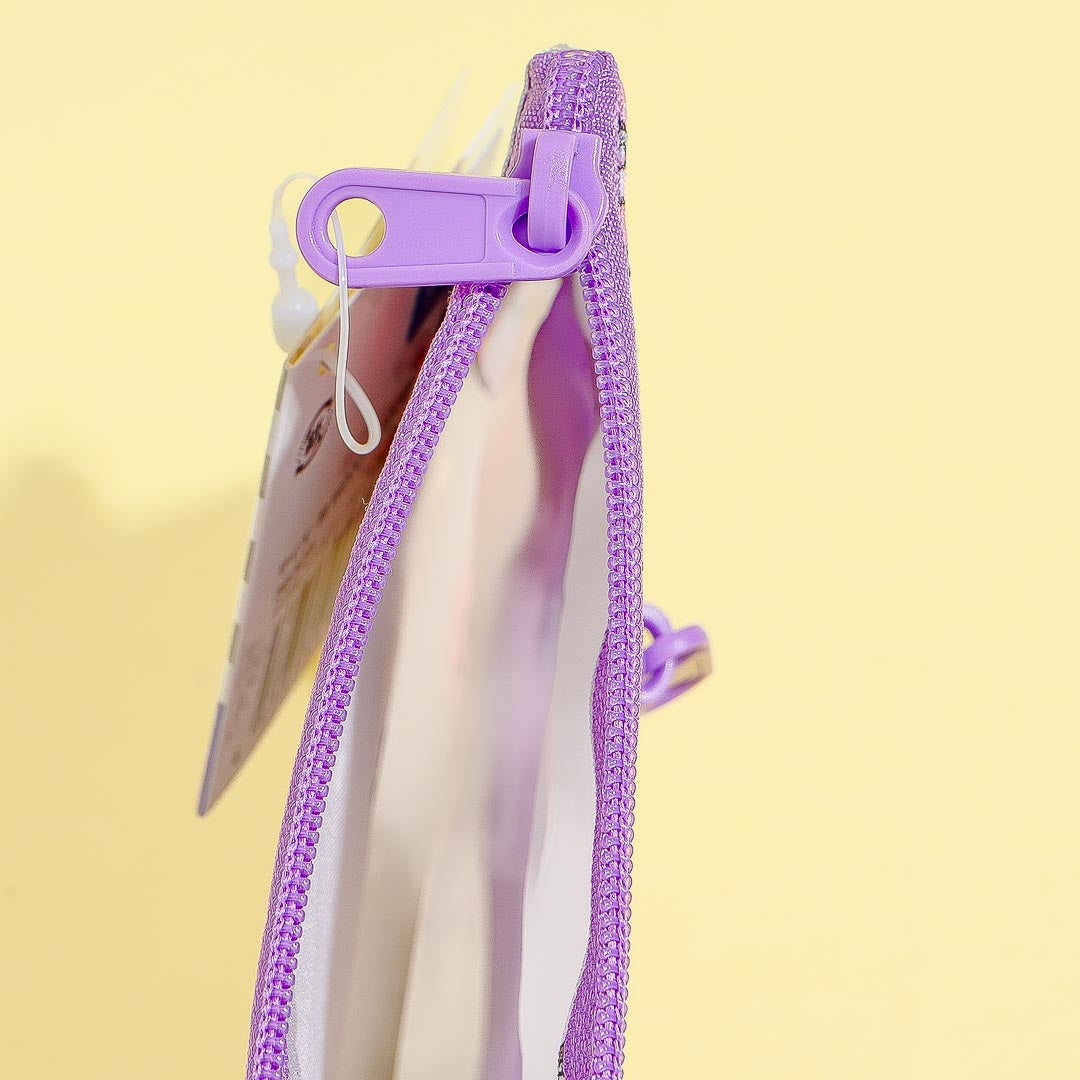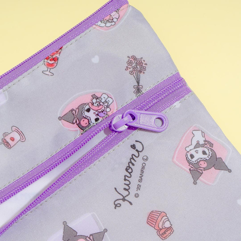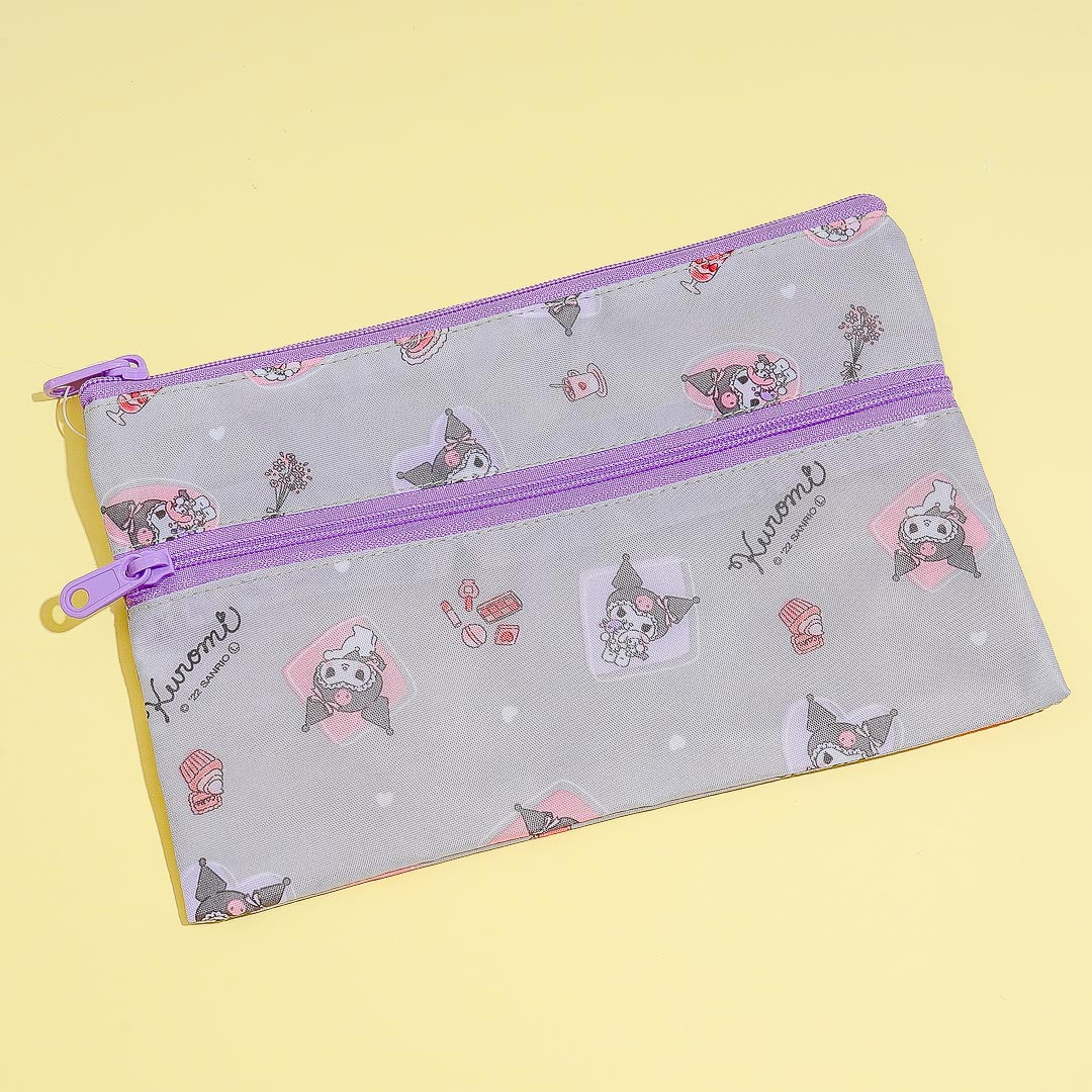 This cute pouch is covered in prints of Kuromi dressed up in lace and ribbons! It has two zipper closures for you to use. You can use this pouch as a pencil case!