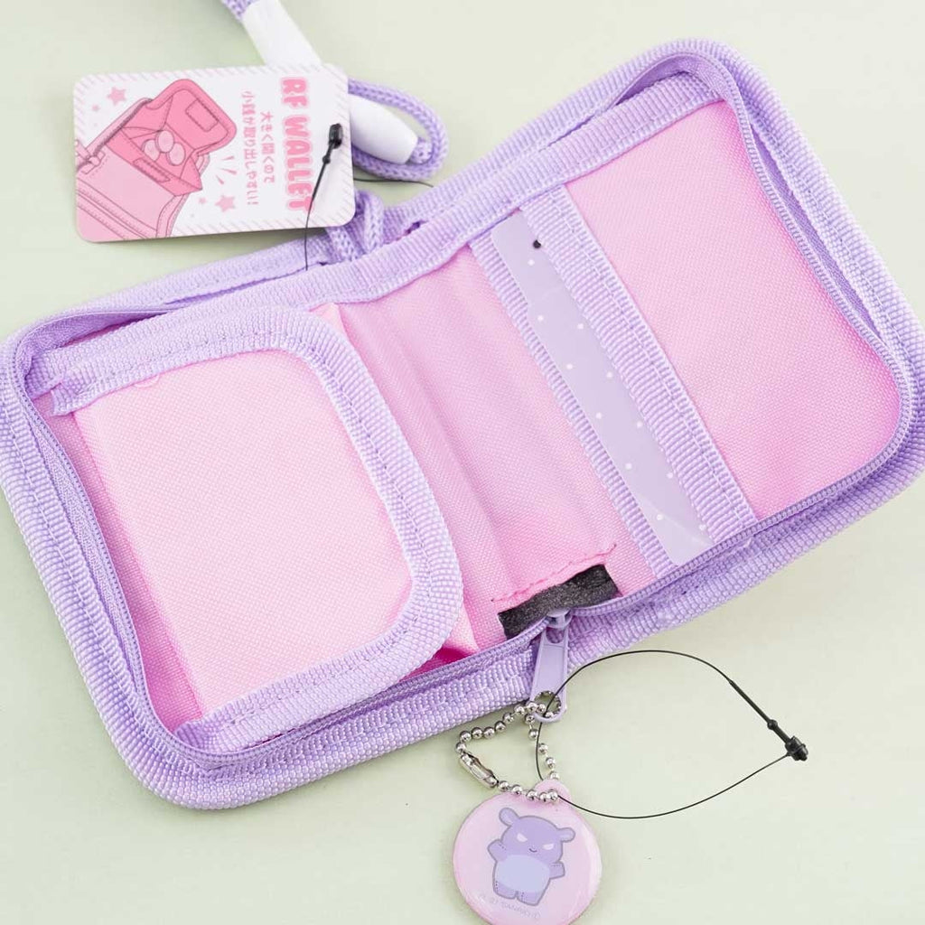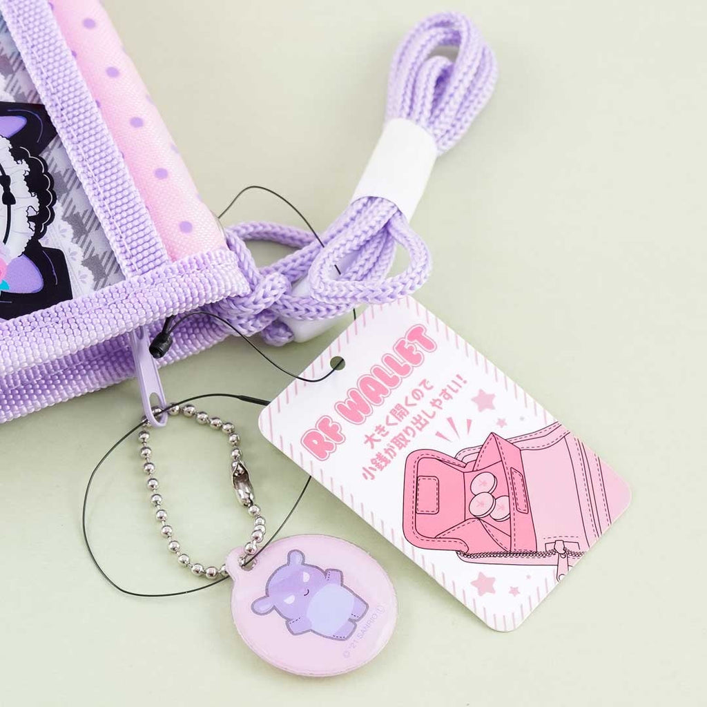 Carry around this super cute wallet with its adjustable strap! It features illustrations of Kuromi wearing Lolita dresses. This zippered wallet also features multiple pockets for your cash and cards and a removable ball chain with a Baku the evil bear charm!