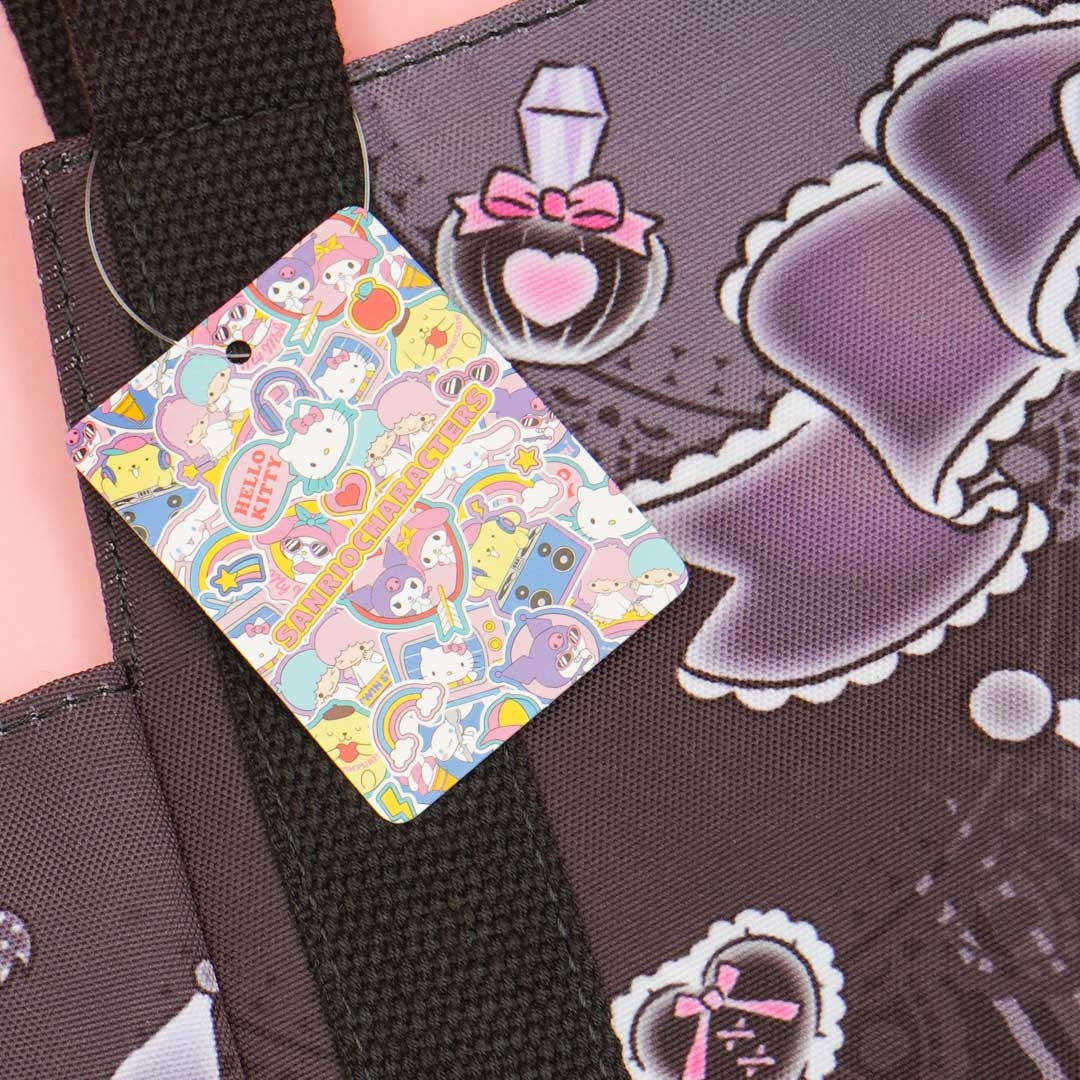 A cute balloon bag showcasing prints of Kuromi wearing a Lolita outfit