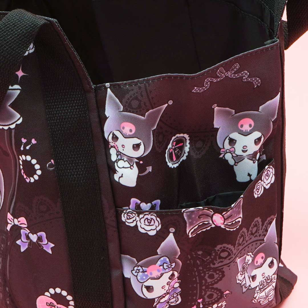 This kawaii balloon bag is covered in prints of Kuromi dressed as a cute Lolita. Use it to carry your wallet, phone, and other essentials! It has multiple pockets for you to place your things in