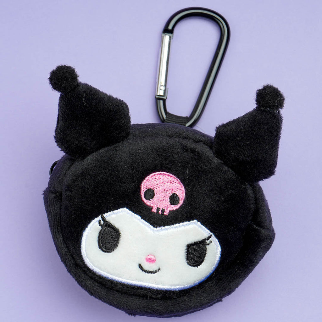 This kawaii Kuromi plushie pouch is perfect for storing candies, loose change, and other small items. It's super soft to touch! You can attach it to your fave bag with its metal carabiner.