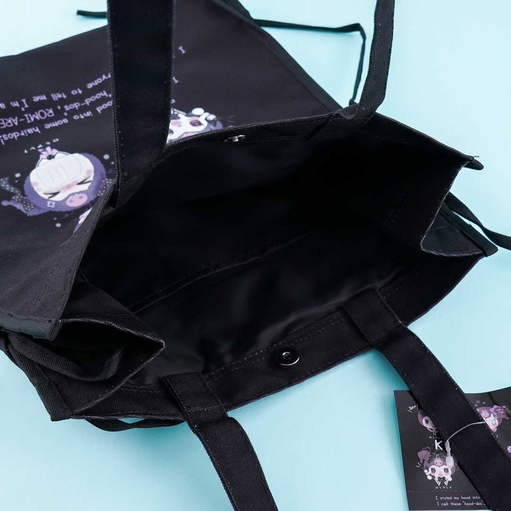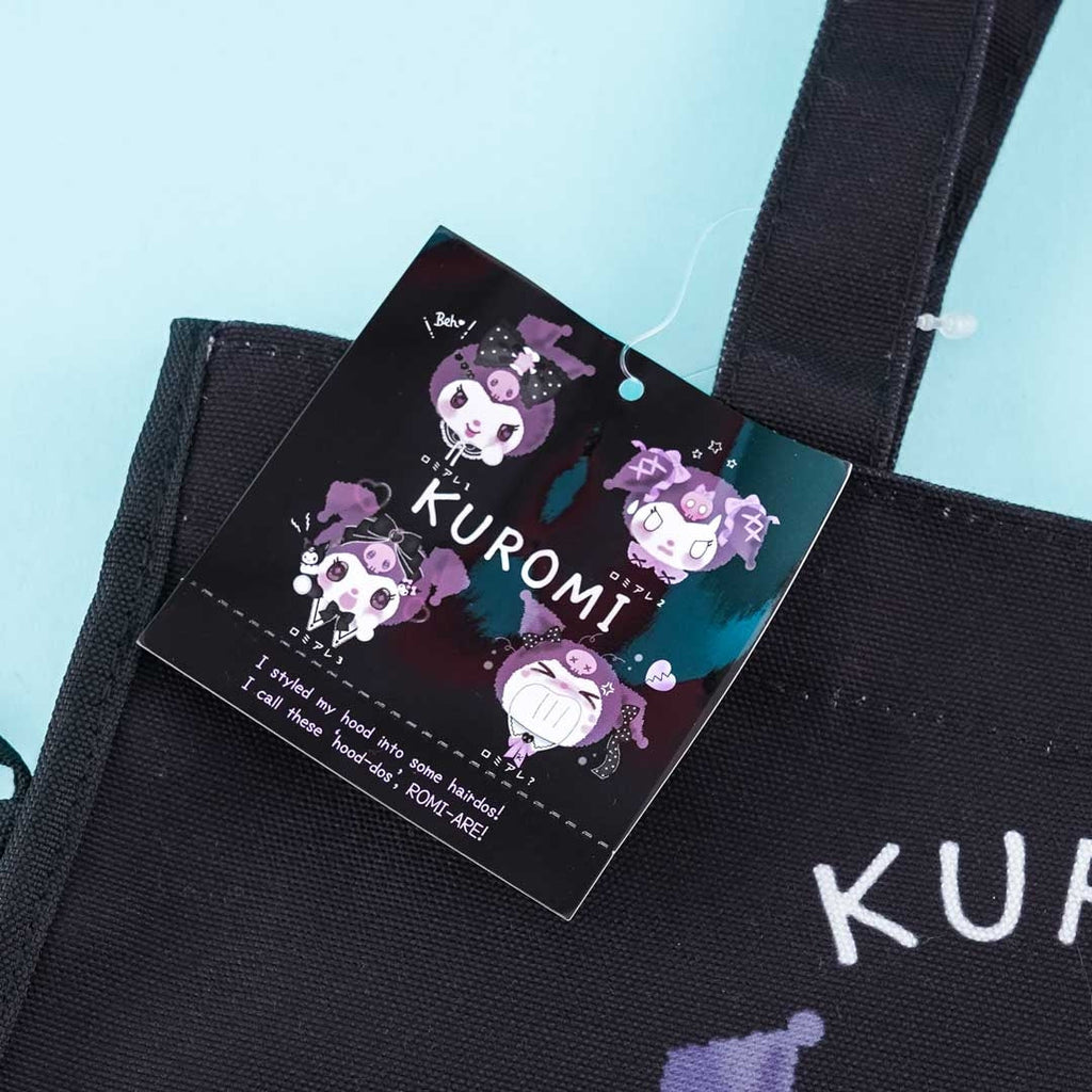 A kawaii tote bag featuring Kuromi from Sanrio's Romiare Collection