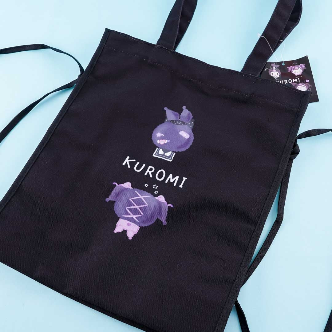 Bring this cute bag featuring Kuromi in various hood-dos on your weekend getaway! This tote is made of canvas material and features an inner pocket. It comes with magnetic button closure and ribbons on its sides to secure your stuff.