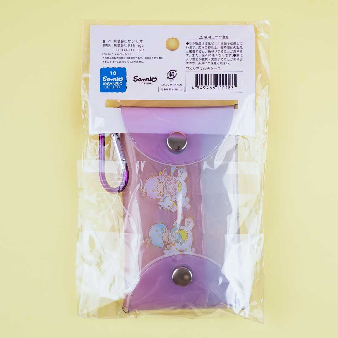 This super cute clear multipurpose case is decorated with prints of the Little Twin Stars ruling over the clouds with their unicorn! It has two snap-button closures and a metal carabiner. Use it to store your knick-knacks and charms!