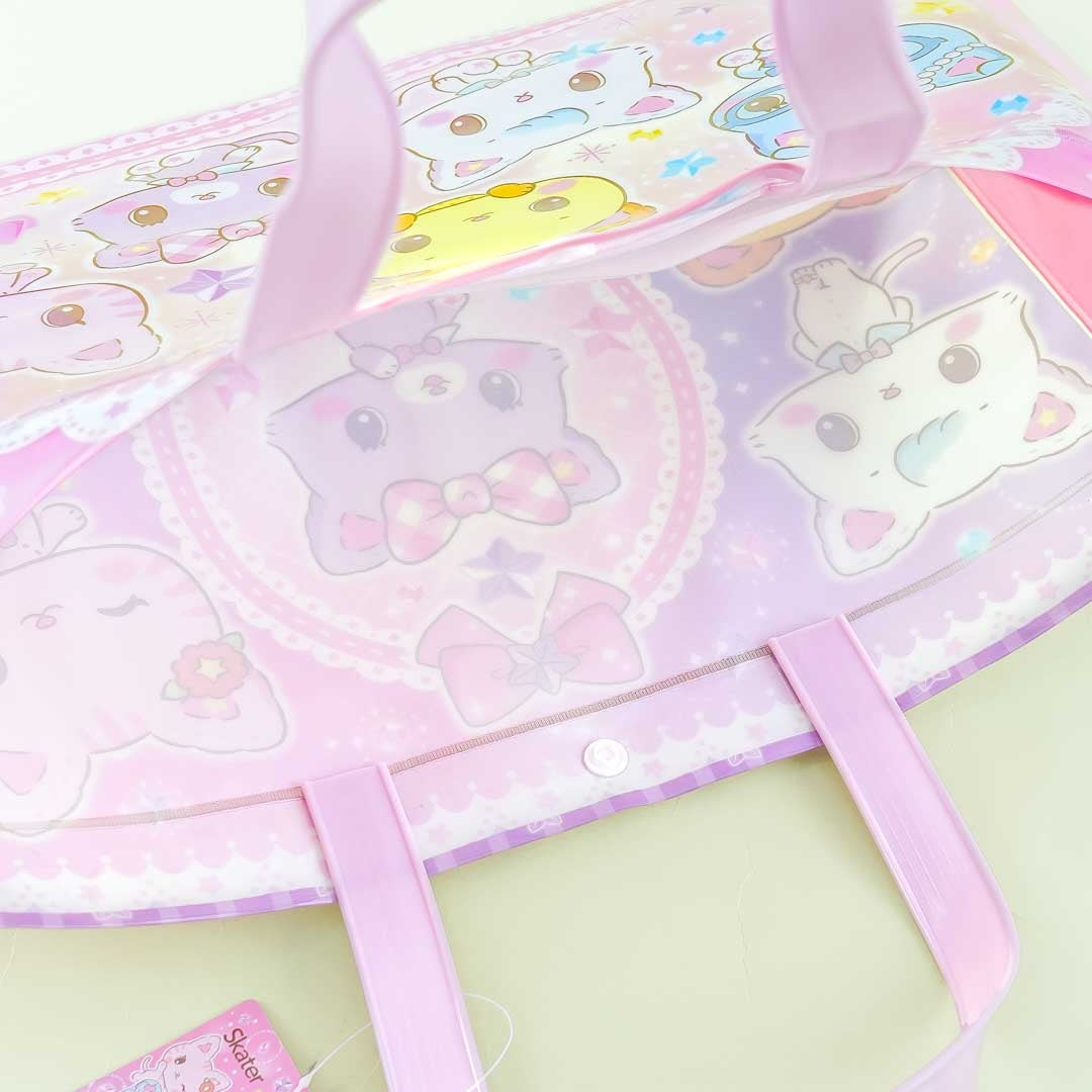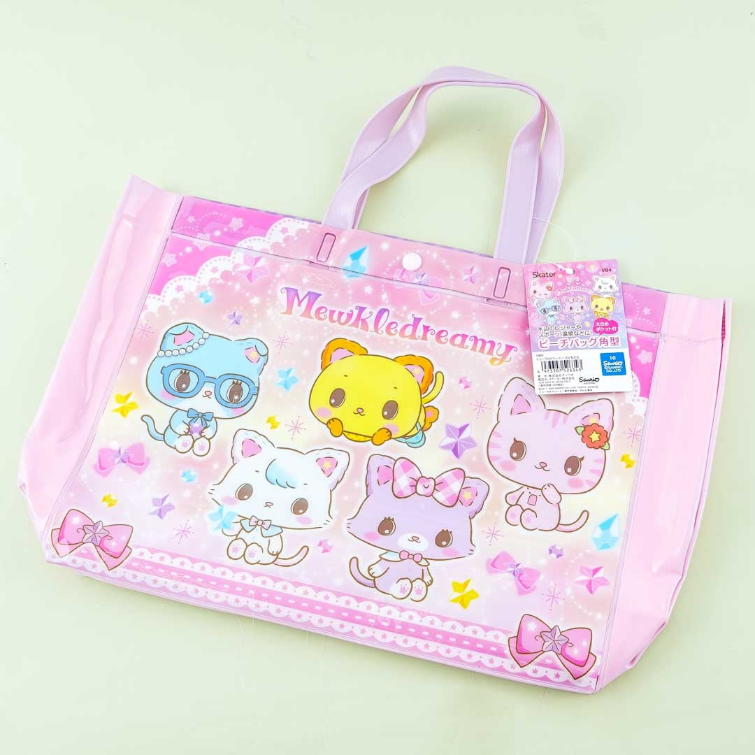 Head to the pool with this super kawaii tote bag illustrated with prints of Mewkledreamy characters! It's made of vinyl fabric that's resistant to water. This tote has a button closure and a semi-transparent inner pocket.