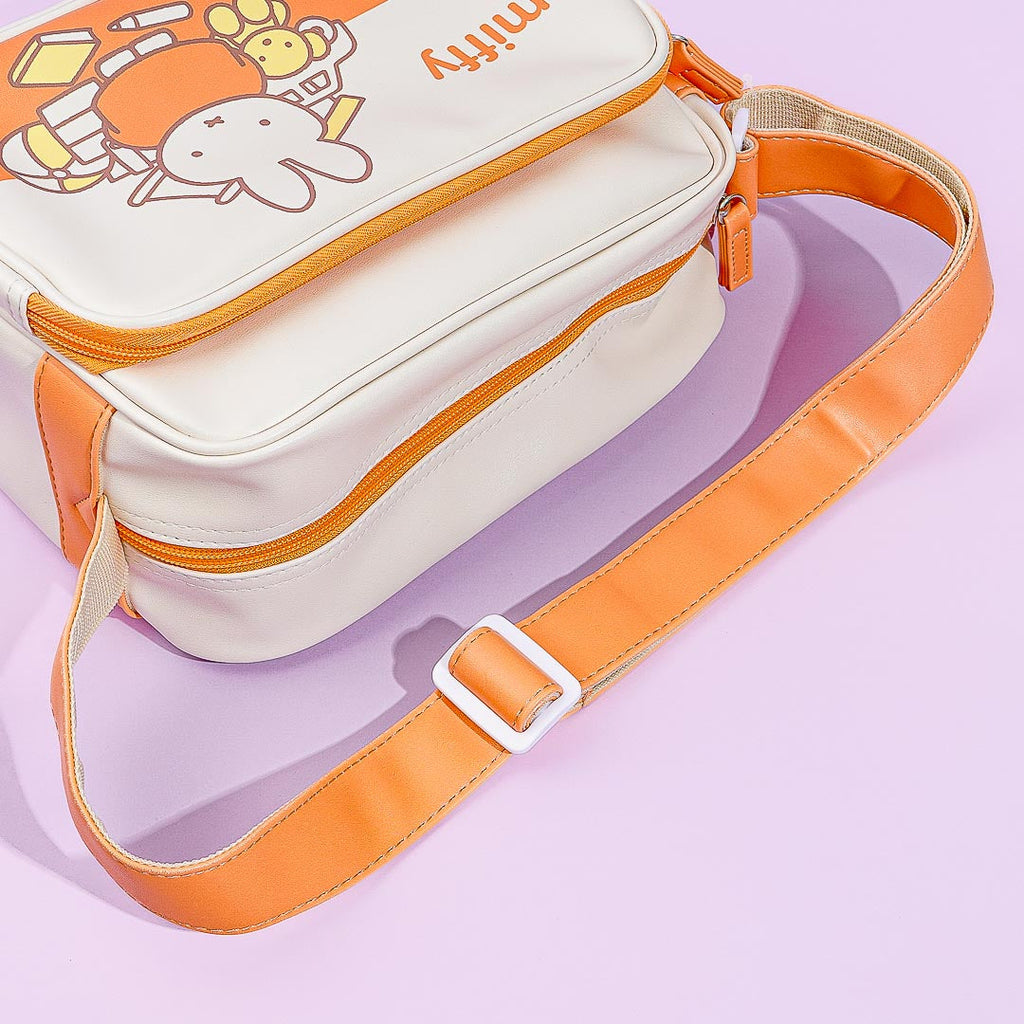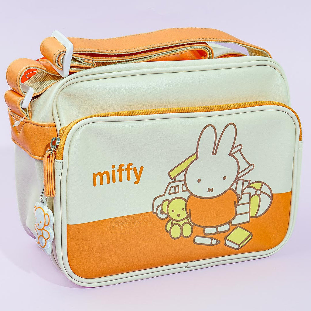 Bring along your essentials while windowshopping at the mall using this super kawaii shoulder bag. It features a print of Miffy surrounded by her toys! This shoulder bag has an outside pocket where you can place small things. You can secure your lunch box in the main compartment thanks to its belt strap.