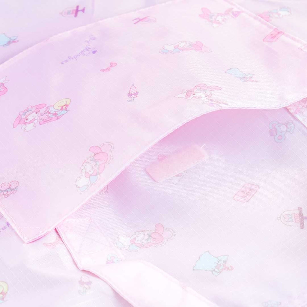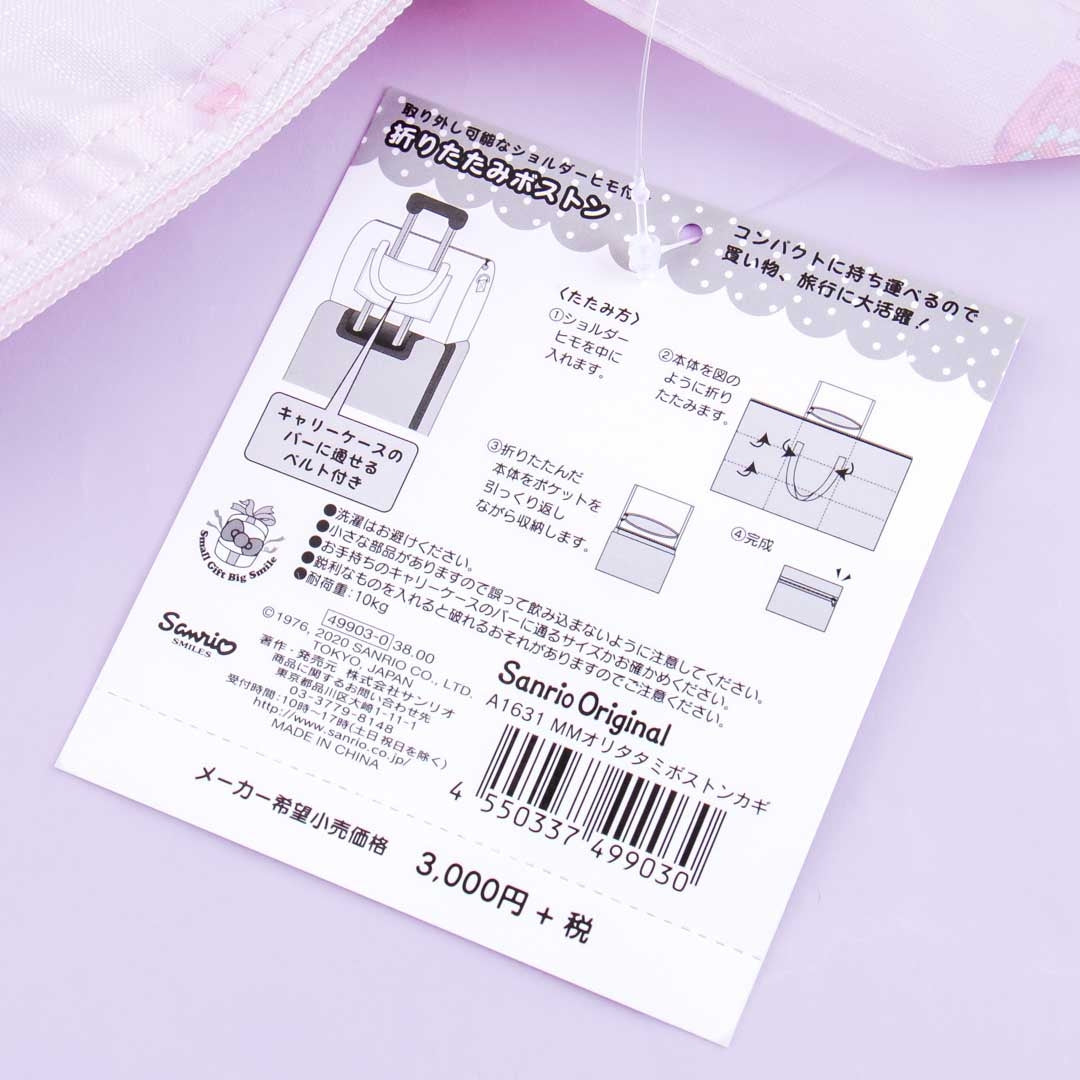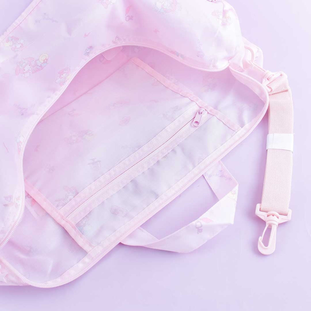 Slide this kawaii zippered travel bag featuring My Melody on the handle of your luggage for extra travel storage! You can also hand-carry or sling this tote using either the short handles or the detachable straps. This cute tote has multiple pockets and a roomy compartment. Just fold it into a square when not in use!