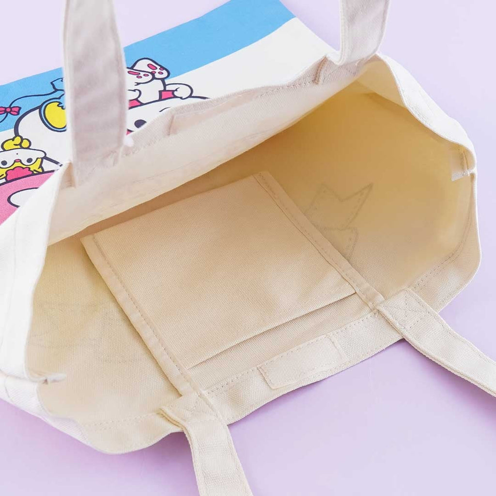Head down to the grocery with this super cute tote bag! It features prints of My Melody and her friends together with mushrooms. You can hang this tote bag from your shoulder thanks to its long strap. This tote also has an inner pocket for small items.