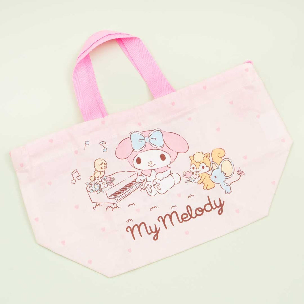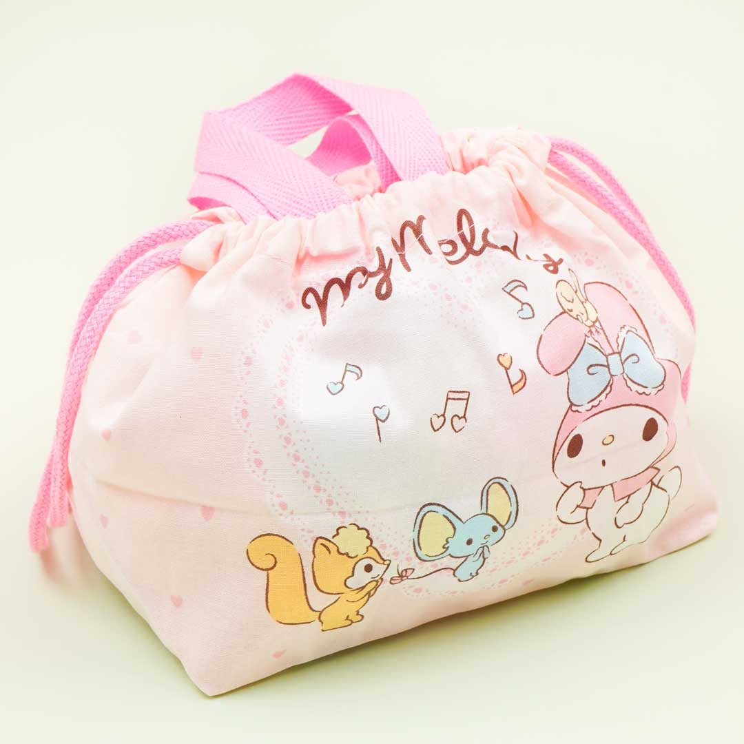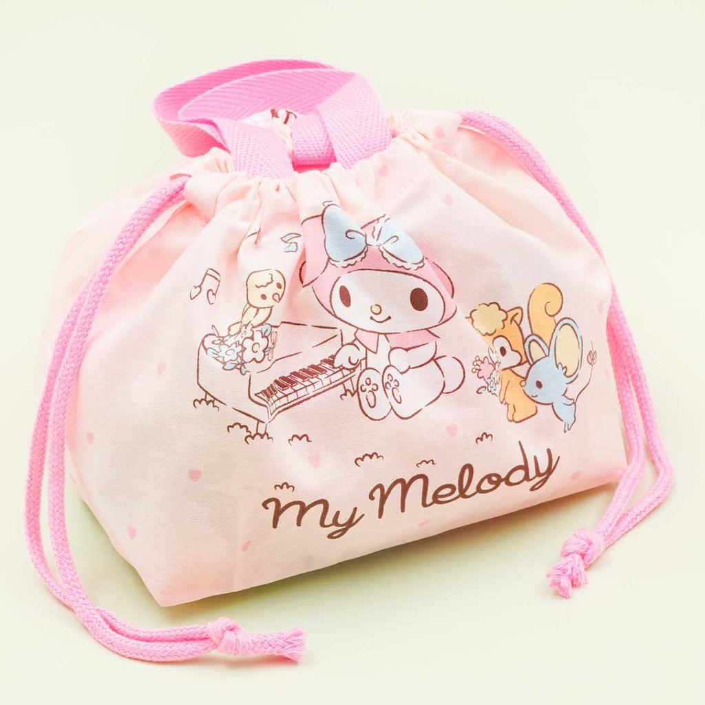 Take this kawaii drawstring lunch tote to school or work! It features prints of My Melody having a piano recital in front of her friends! The bag is made of super-soft cotton and has drawstrings that you can simply pull to close the tote and secure the contents inside.