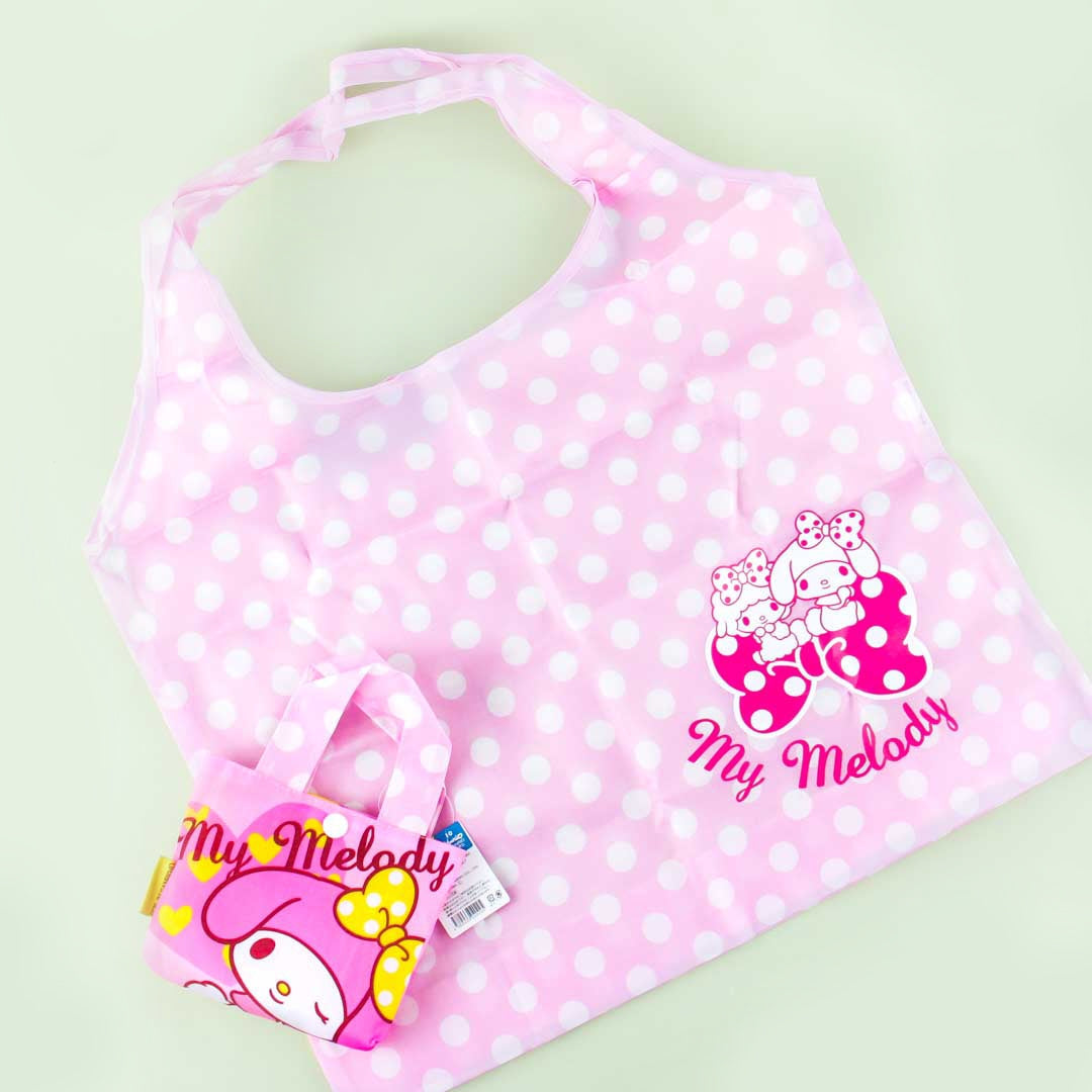 Head out to the supermarket with this kawaii polyester eco bag featuring My Melody characters with polka dots! Fold it when you don't need it and keep it inside the carrying case with prints of My Melody.