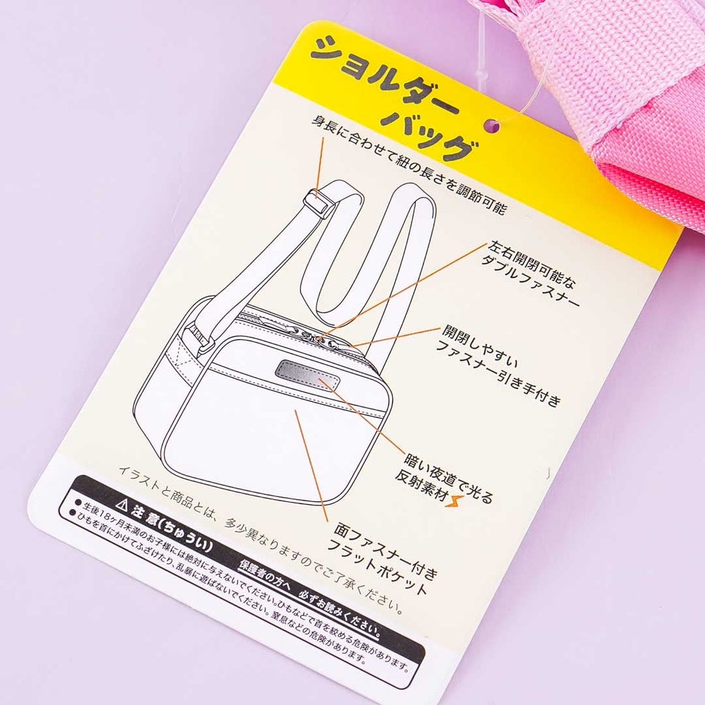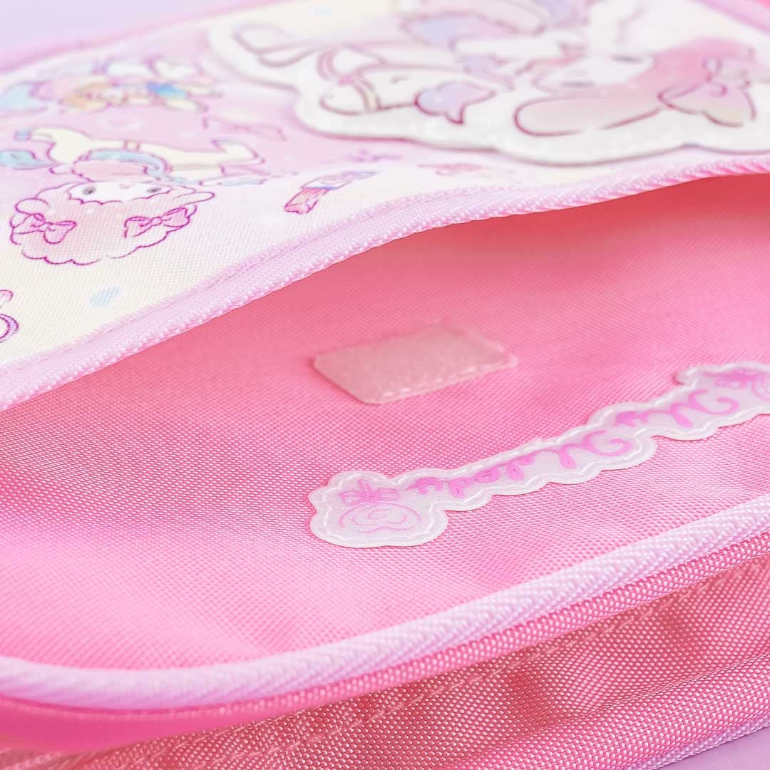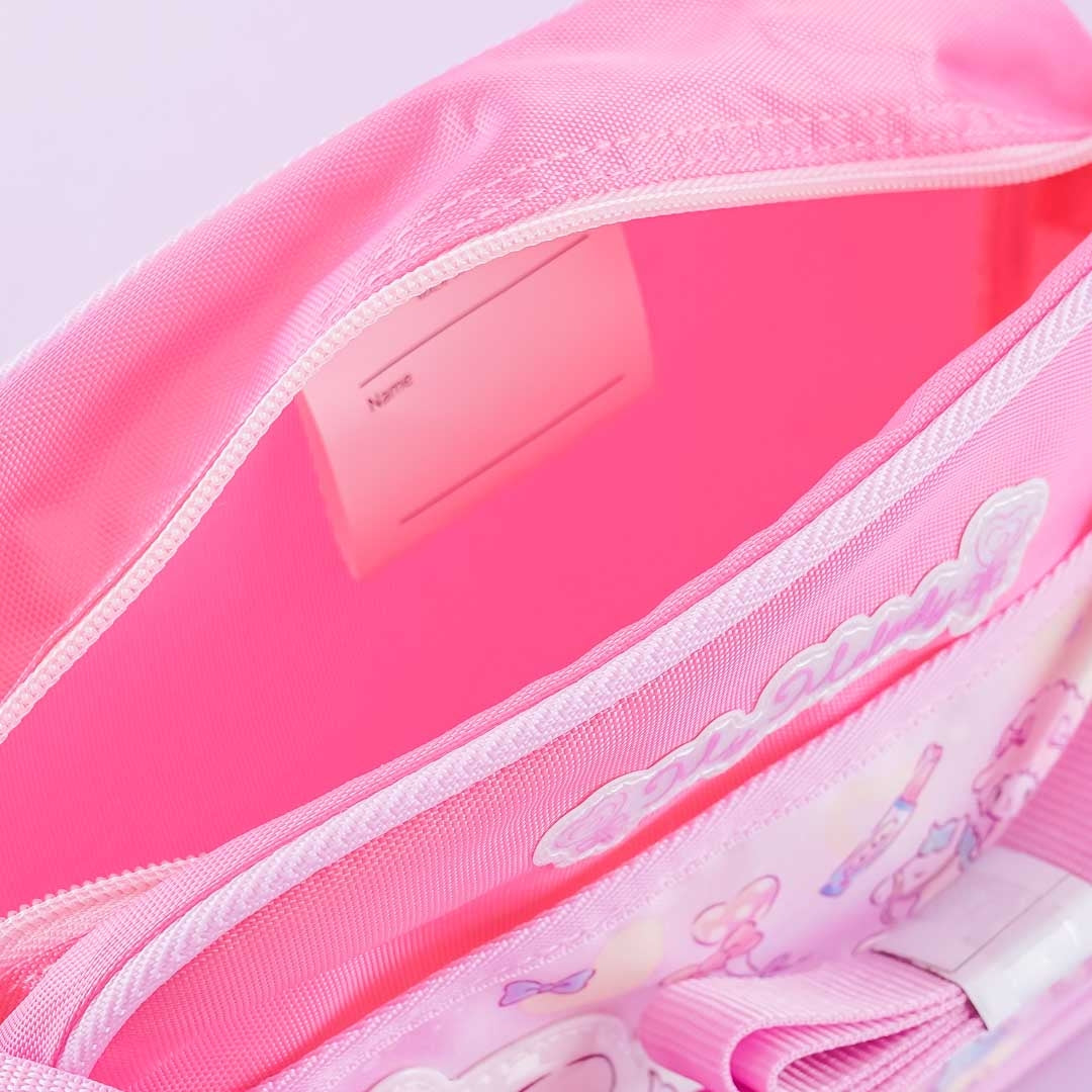 This super cute sling bag featuring My Melody and her friends playing with ponies is spacious enough to hold your school stuff! It has a reflective nameplate, a front pocket with a velcro lock, a zipper closure, and an adjustable bag strap. This kawaii shoulder bag is made of soft polyester.