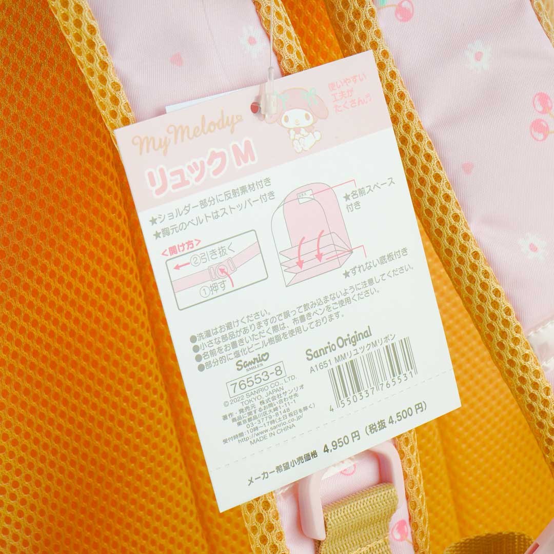 Add a dose of cuteness to your outfit by carrying this kawaii backpack! It has prints of My Melody and lots of flowers and cherries. The bag’s front pocket also has a special huge ribbon attached to the front.