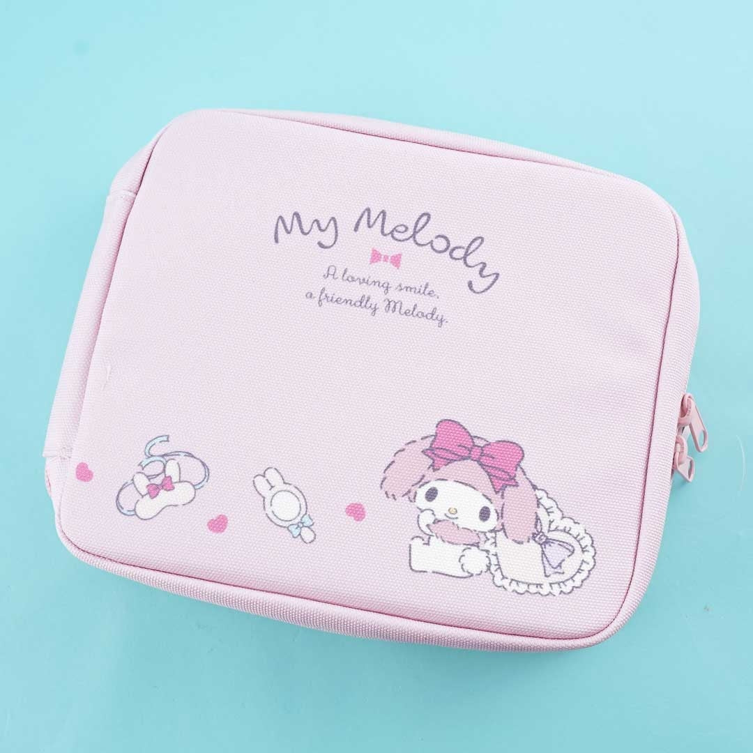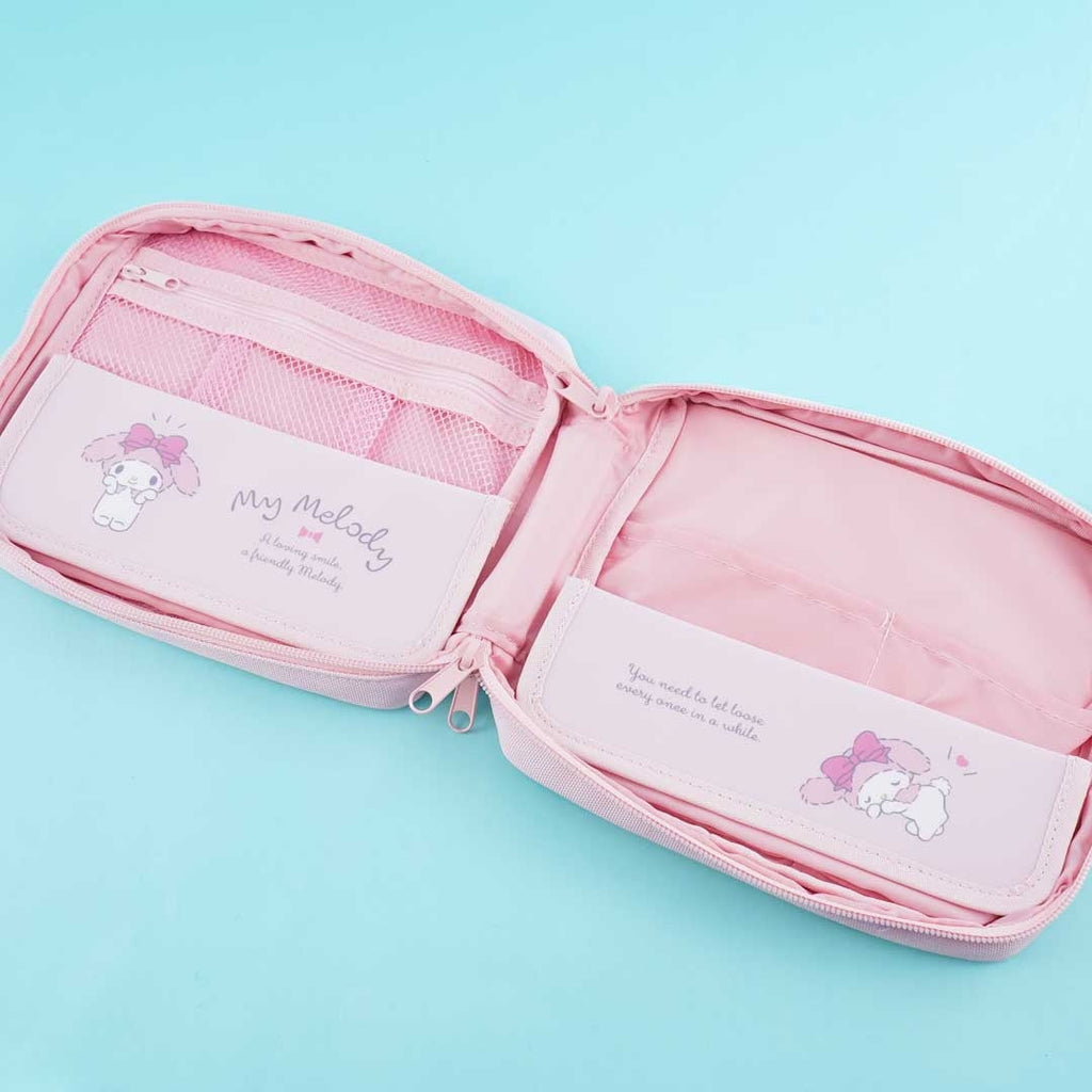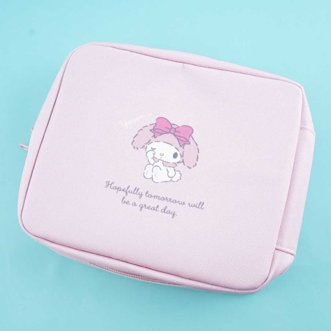 This unique case can stand on its own in two different ways and is decorated with kawaii prints of a smiling My Melody! Use this storage pouch to organize your favorite hair clips, bows, and other accessories! It comes with multiple pockets and dual zipper closures.