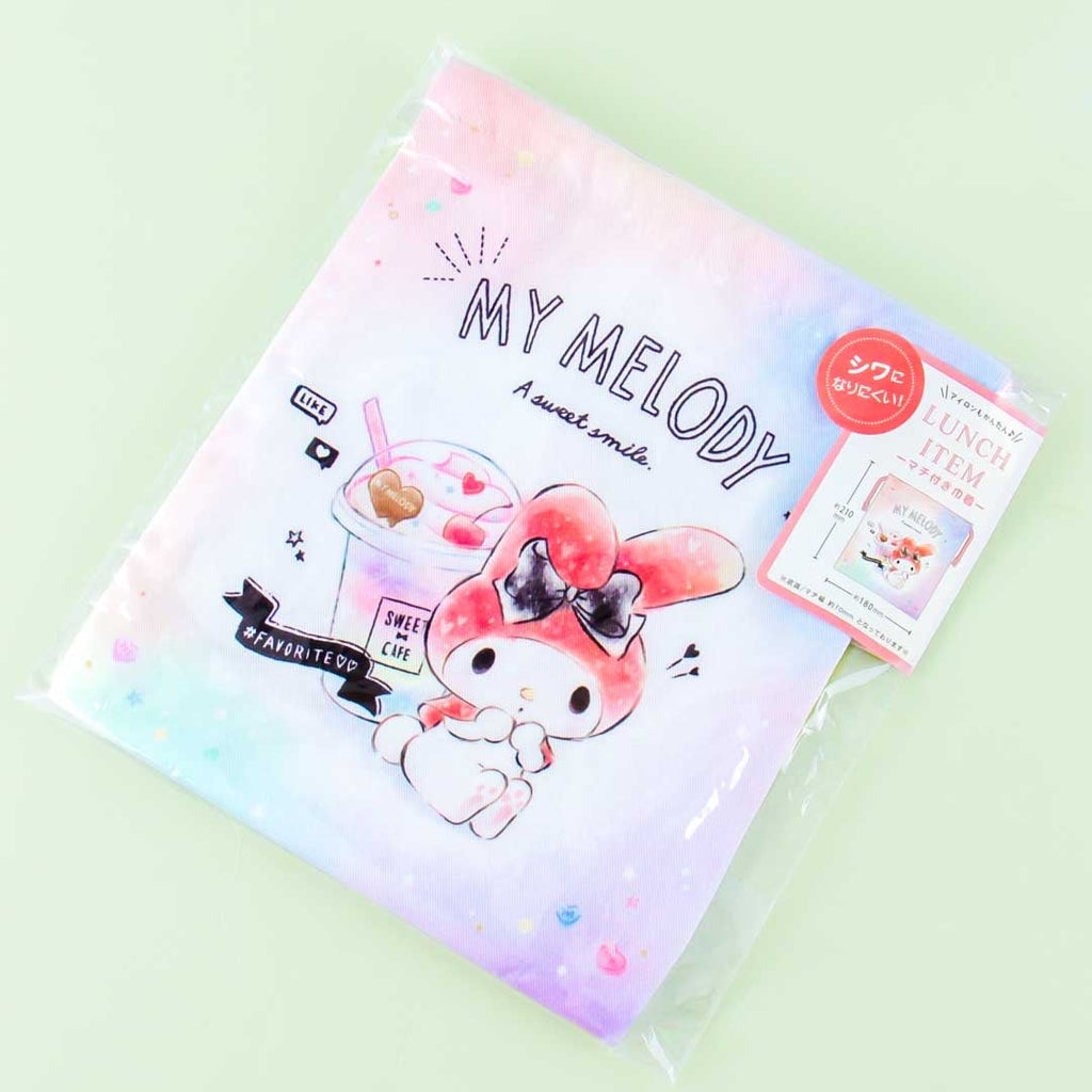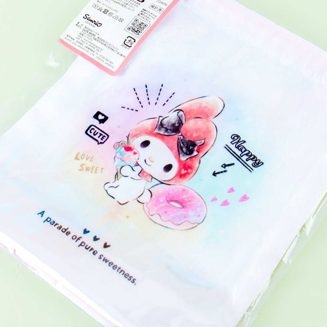 • A drawstring bag featuring My Melody with kawaii desserts