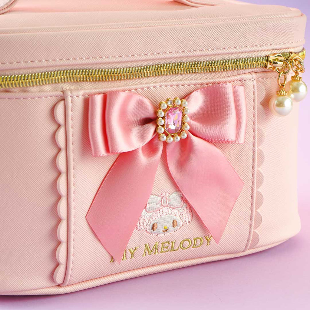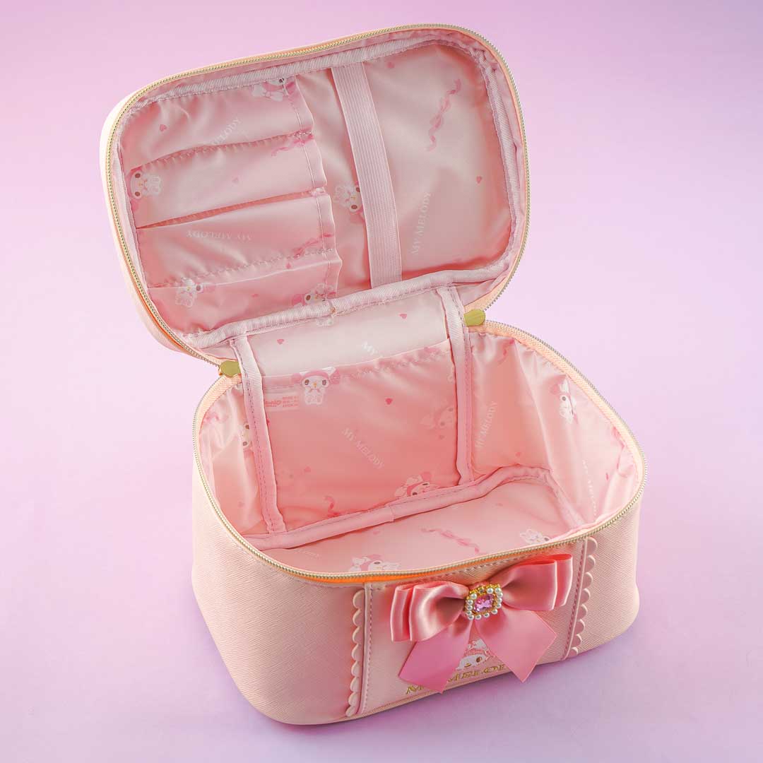 Store your cosmetics inside this cute vanity pouch! It showcases a print of My Melody and a super kawaii ribbon decor. This pouch has a big compartment and multiple brush slots.