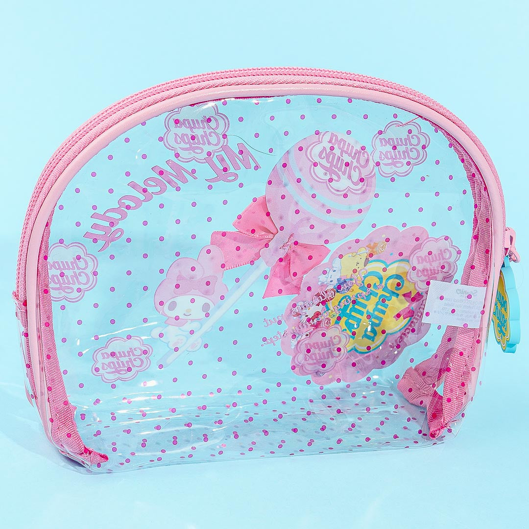 Store your cosmetics inside this transparent pouch illustrated with My Melody clinging on to a Chupa Chups lollipop. It comes from a collaboration between Sanrio and Chupa Chups! This zippered pouch also ahs a cute ribbon decor.