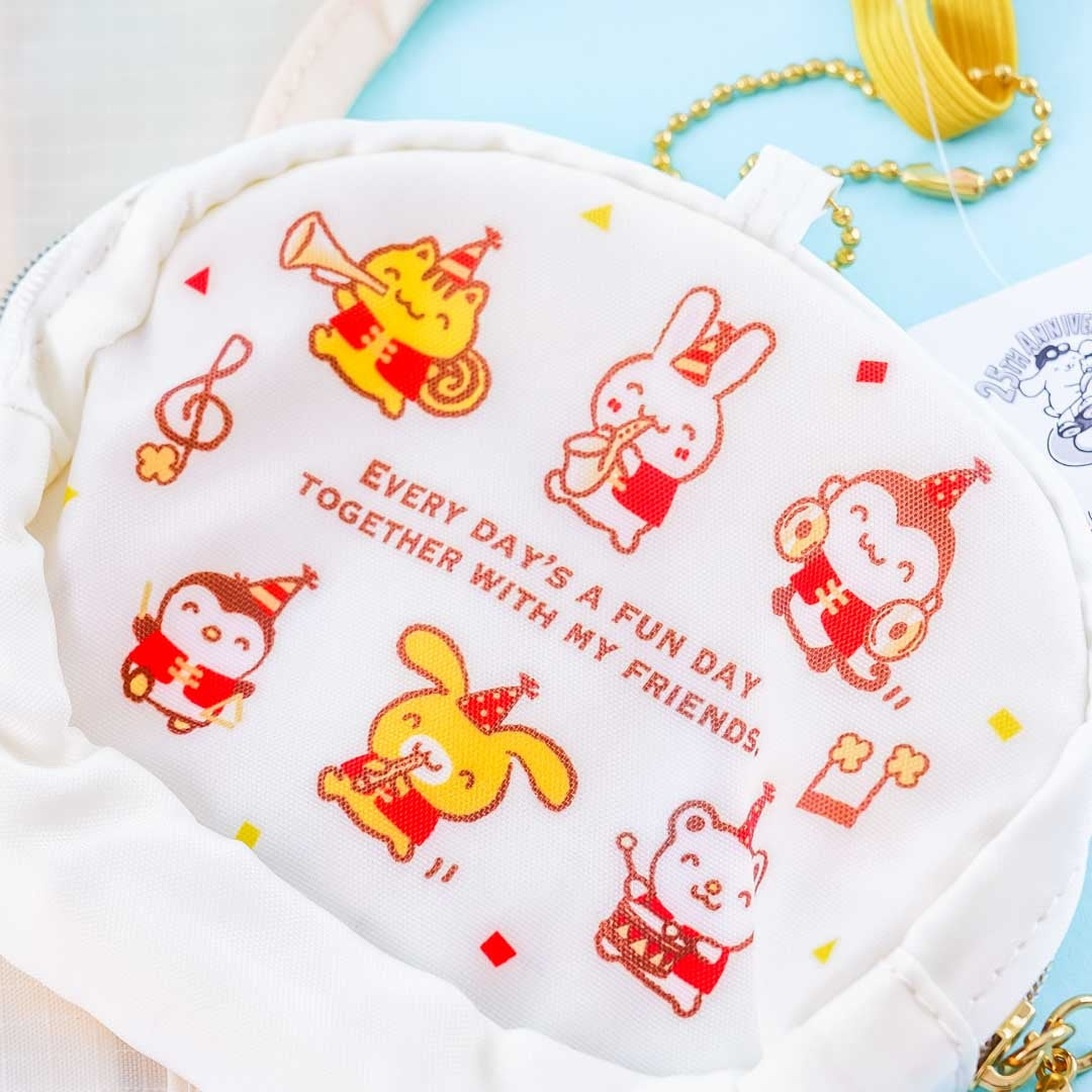 Carry your books or groceries in kawaii style using this super cute eco bag! It features commemorative gold prints of Pompompurin celebrating his twenty-fifth anniversary by creating a marching band with his friends! When you’re done using this reusable polyester tote, you can fold it and place it inside the included carrying pouch with a detachable ball chain.