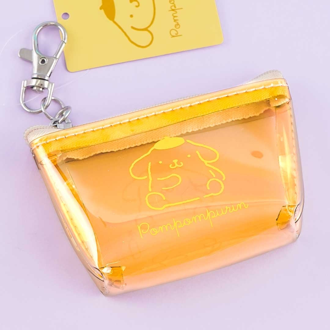 • A kawaii transparent pouch illustrated with a print of Pompompurin