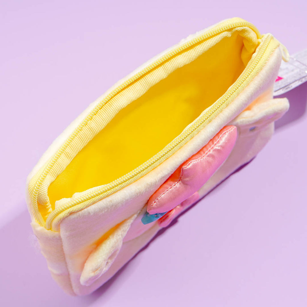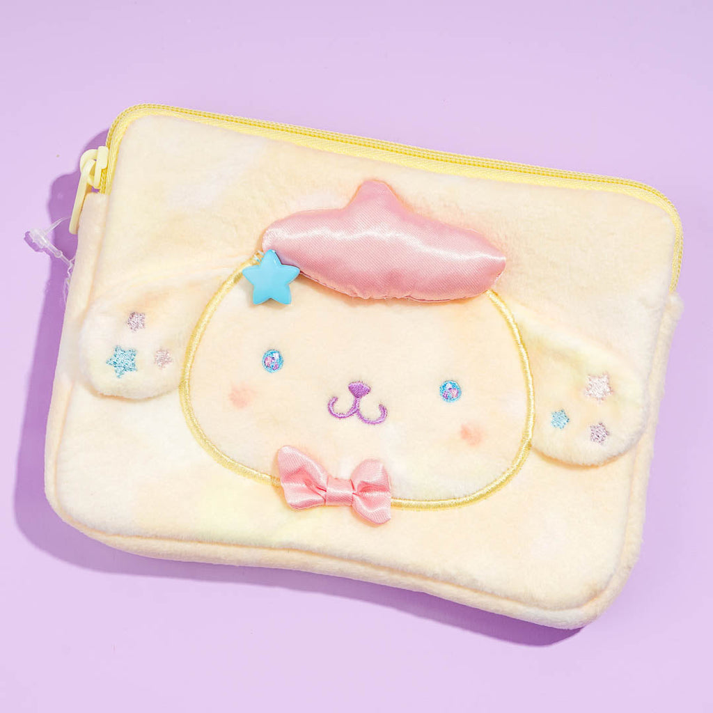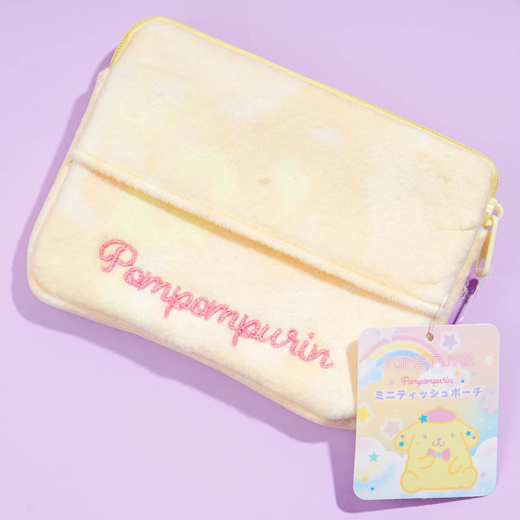 This kawaii mini pouch features Pompompurin's dreamy face with a pop-out hat and bow! Use it to store your trinkets and other small essentials. This soft and fluffy pouch also comes with a tissue pocket!