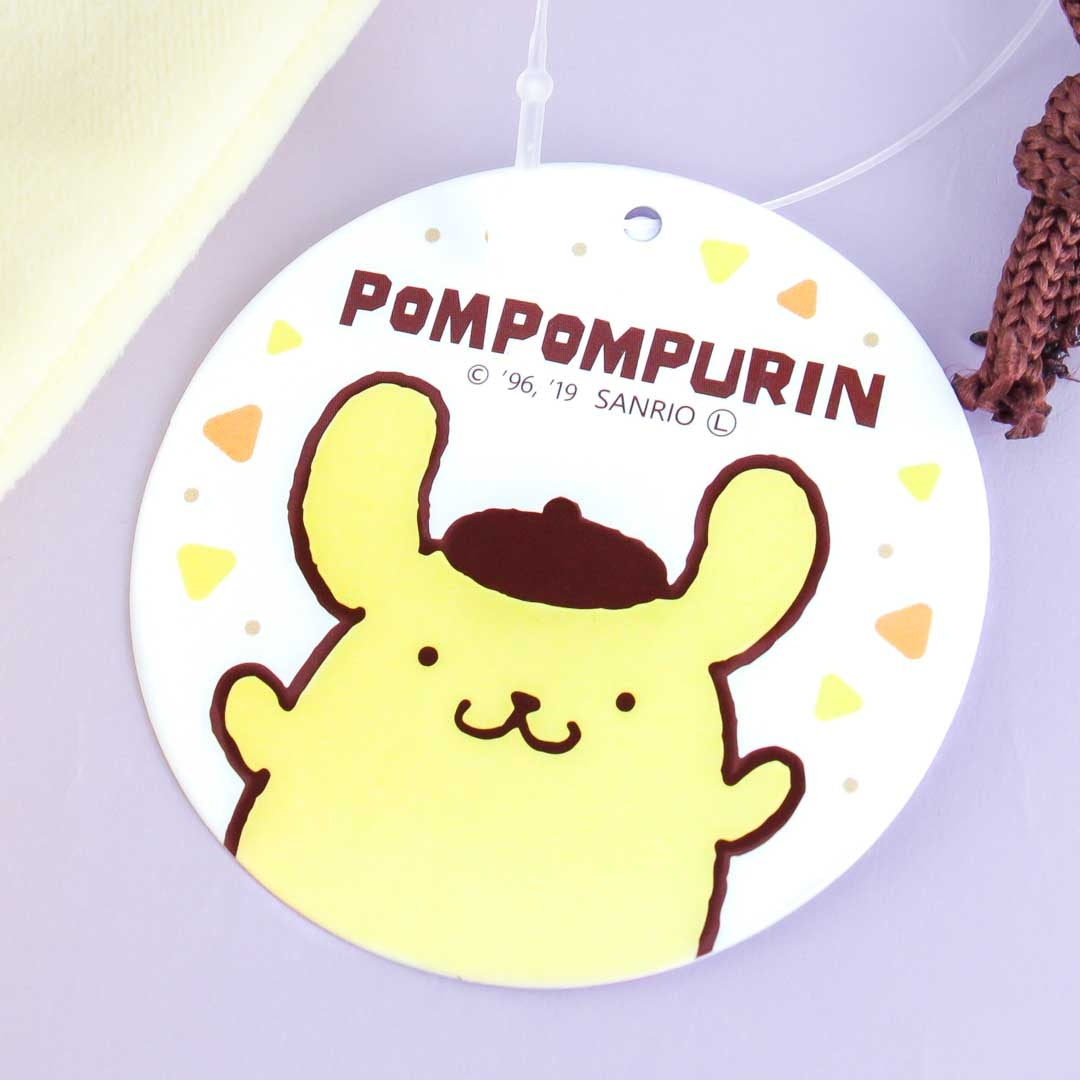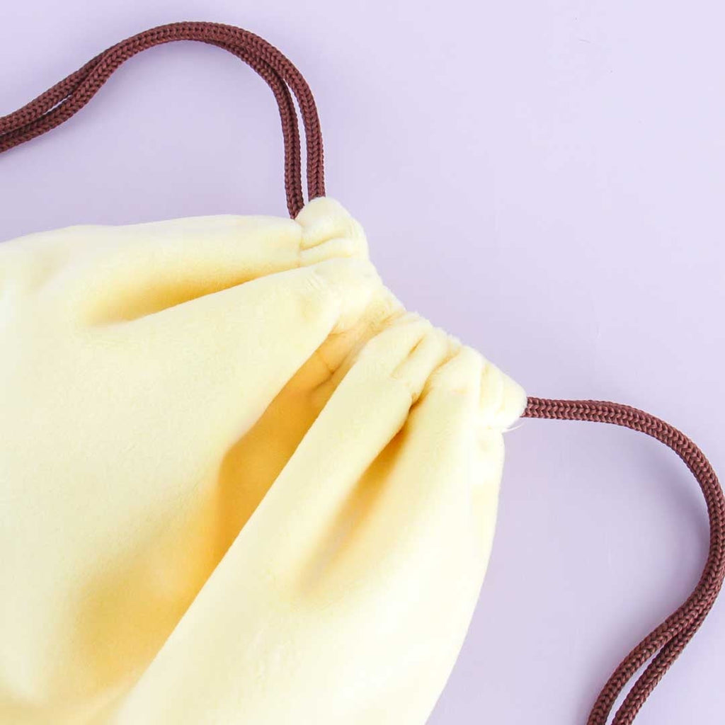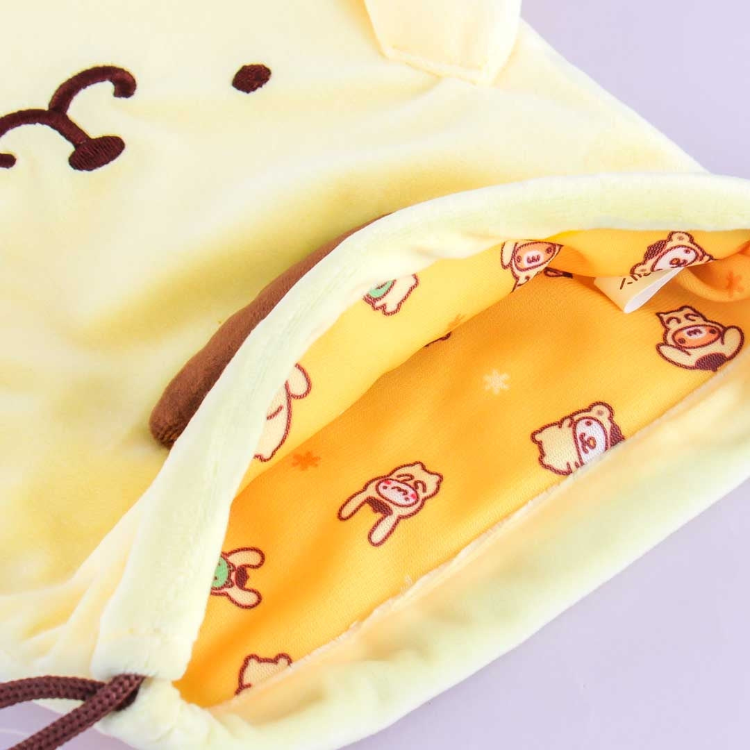 Keep your cards and other little trinkets inside this fluffy bag! It features an illustration of Pompompurin’s face, has pop-out beret and ears, and an inner printed lining. Simply pull the strings to close the bag.