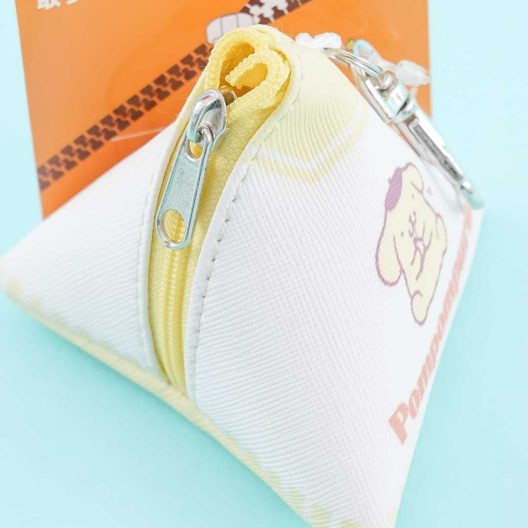 Store your coins inside this kawaii triangle mini zippered pouch! It features Pompompurin drinking juice from a tetra pack. Take it anywhere by attaching this pouch to your shoulder bag with its metal clip!