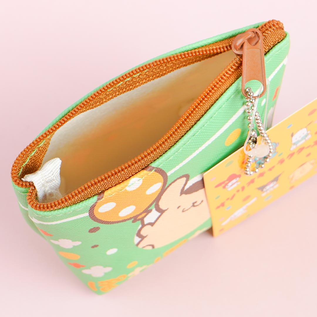 Keep your charms and trinkets in this cute mini pouch! It showcases a kawaii Pompompurin design that's part of the Sanrio Showa Retro series. This pouch comes with a zipper closure and can also be used as a coin purse.