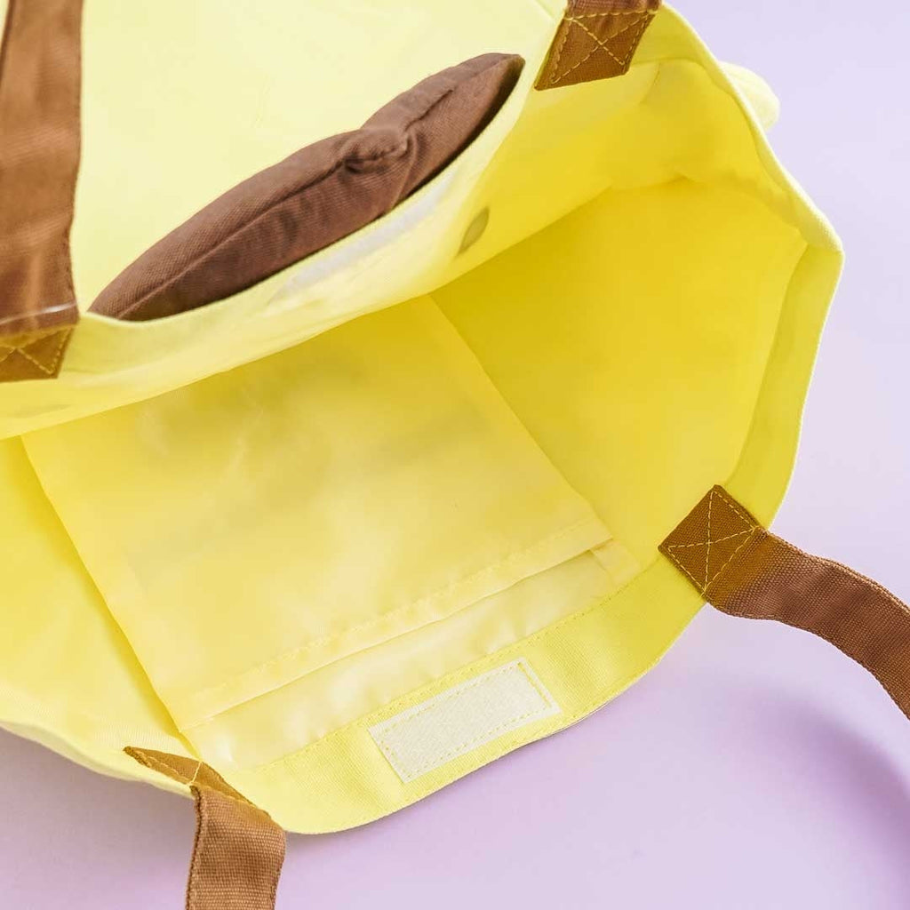 This die-cut Pompompurin tote bag is perfect for carrying your essentials while you go strolling outside. It resembles a cute Potetan animal plushie! You can place small things inside its inner pocket. Keep your things safe by closing its adhesive closure.