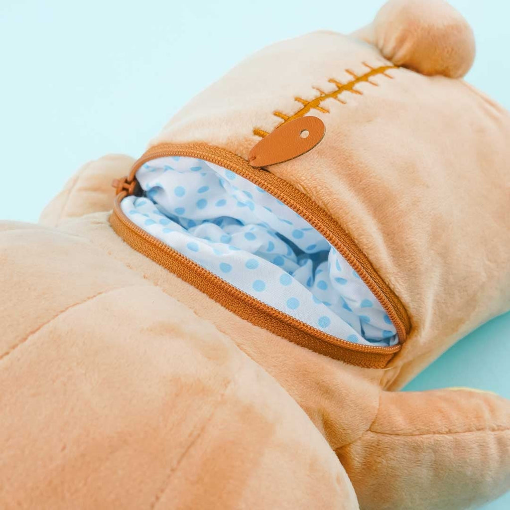 This kawaii large-sized Rilakkuma plushie doubles as a pouch where you can put small knickknacks! It’s made of fluffy polyester, has a horizontal zipper closure, and has a removable cloth strap.