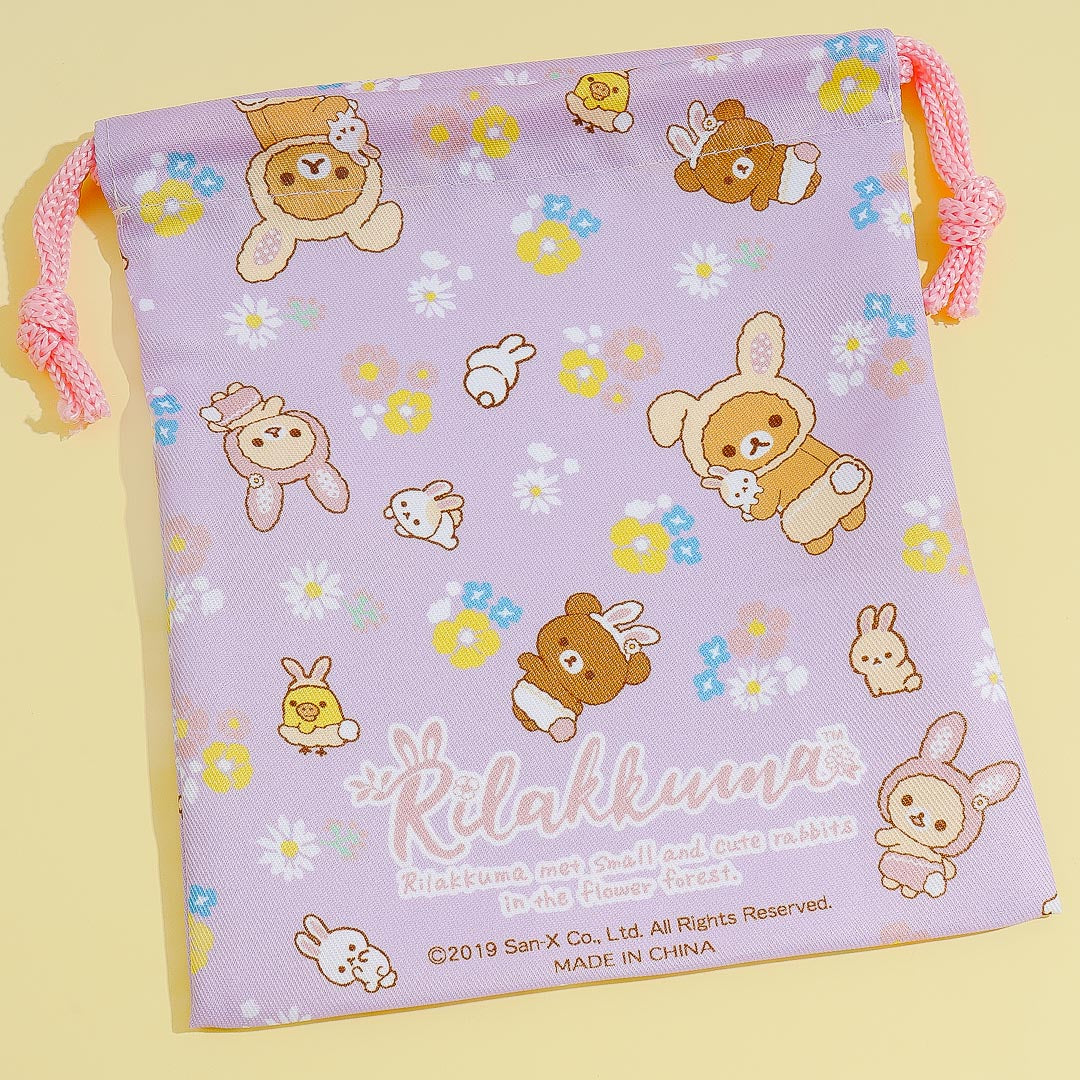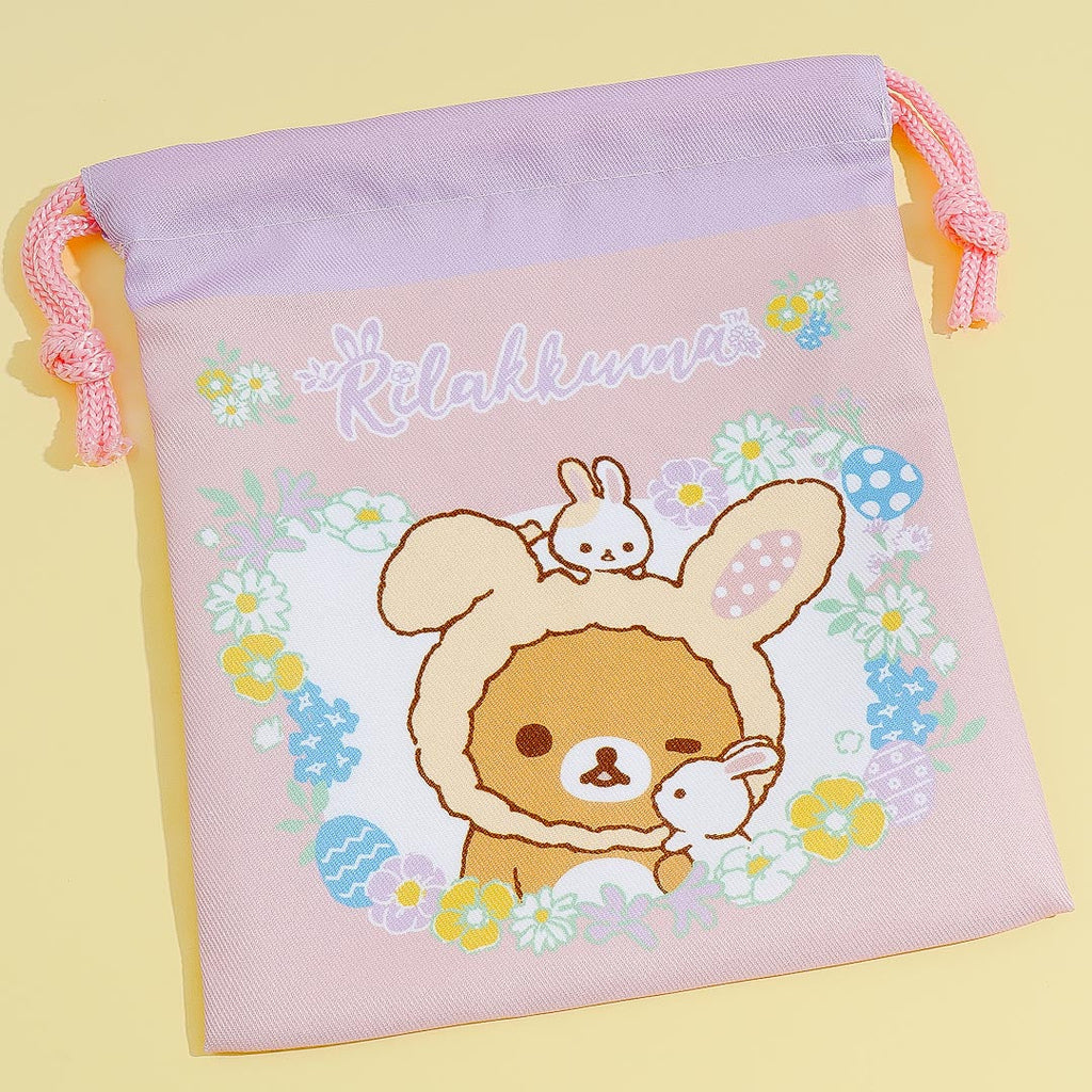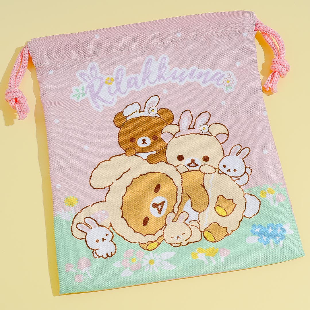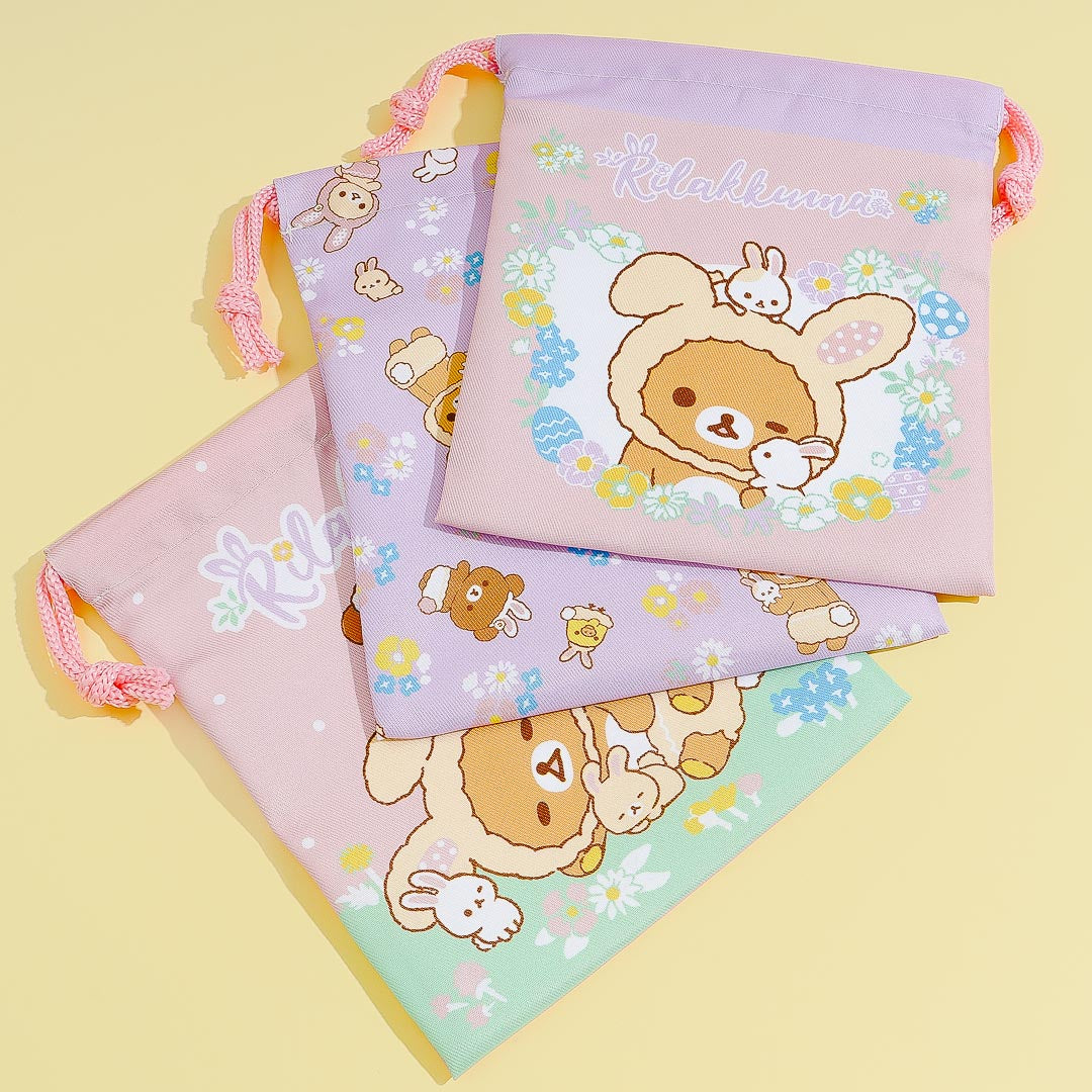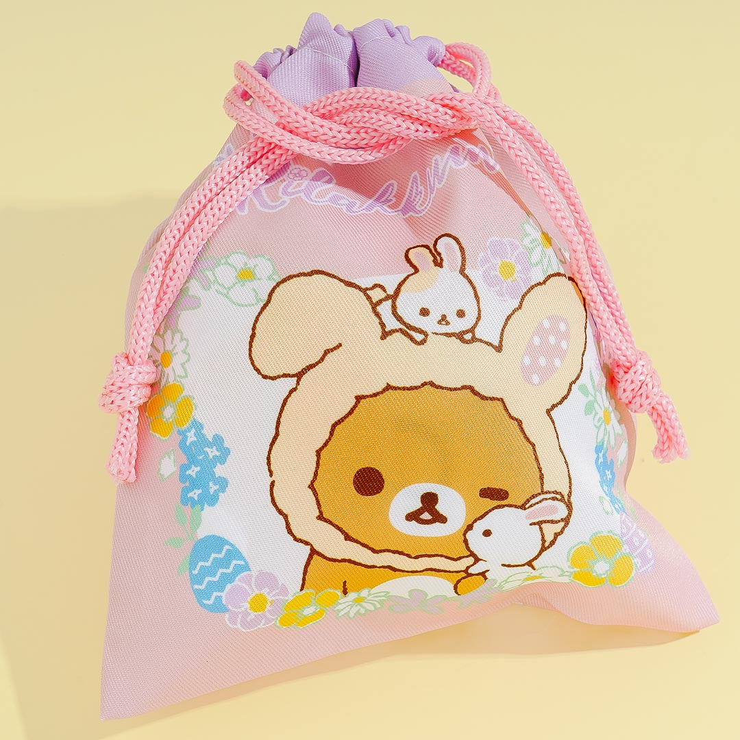 You can store your keys, cards, and other small travel essentials in this kawaii set of drawstring bags! It showcases cute illustrations of Rilakkuma dressed as an Easter bunny. Simply pull the strings to close the pouch!