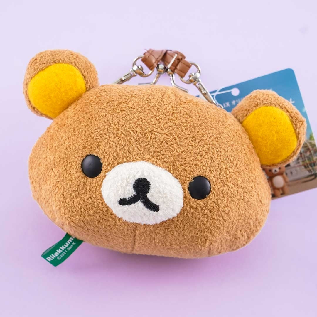 A cute Rilakkuma plushie head pouch from the Rilakkuma & Kaoru-san series