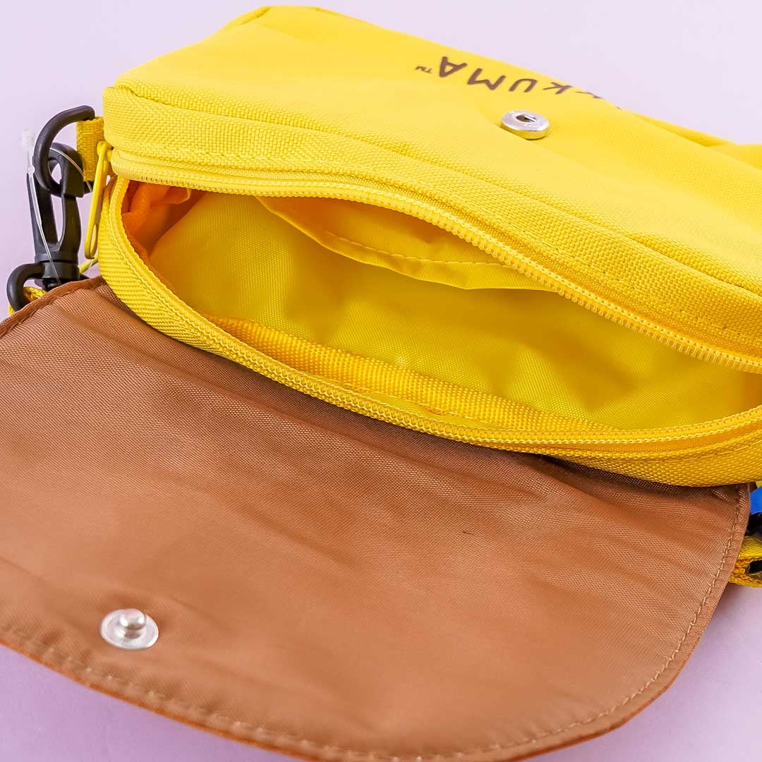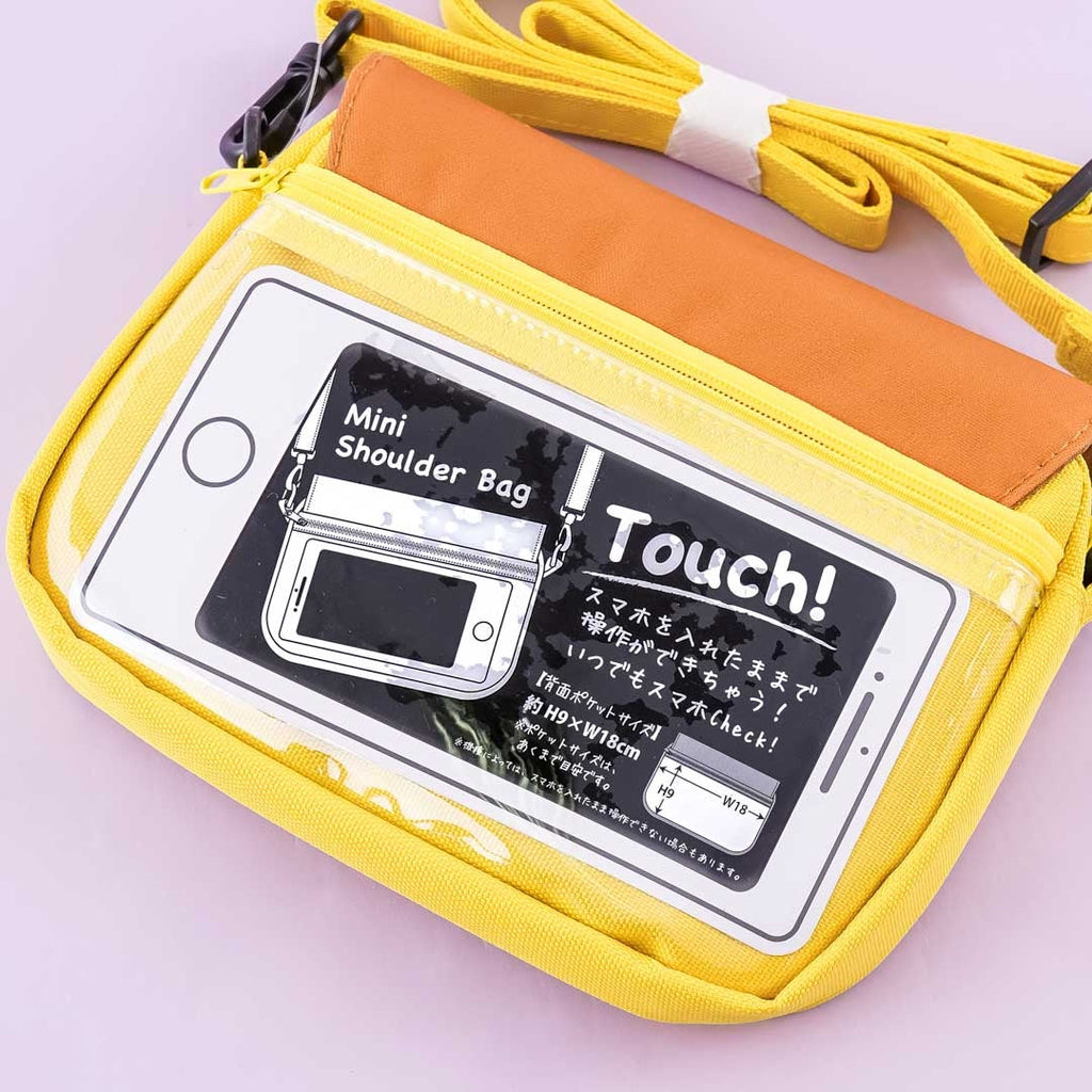 This super cute mini-sized bag is illustrated with Rilakkuma's face! You can put your phone inside its transparent pocket and still be able to use it. It features both a magnetic flap and zipper closure and a spacious compartment! Carry it around as a pouch or a shoulder bag with its removable strap!