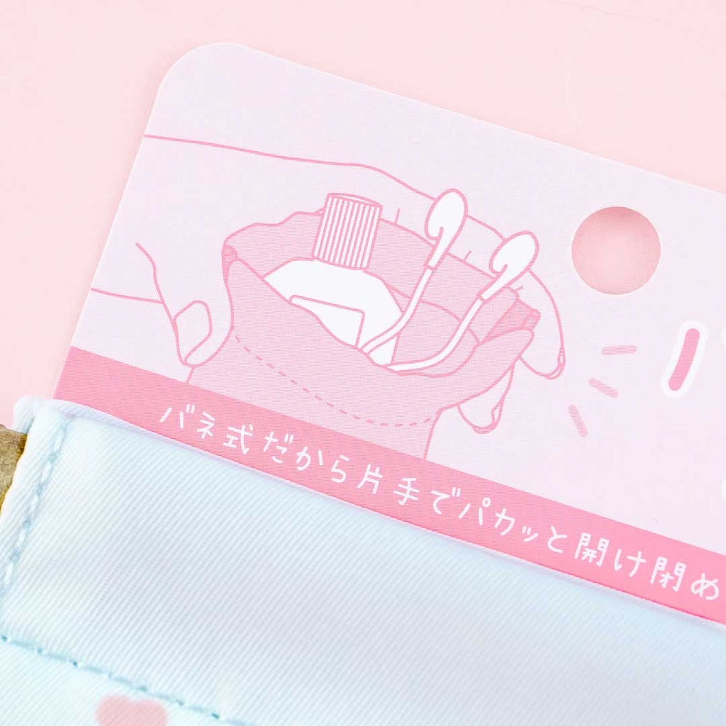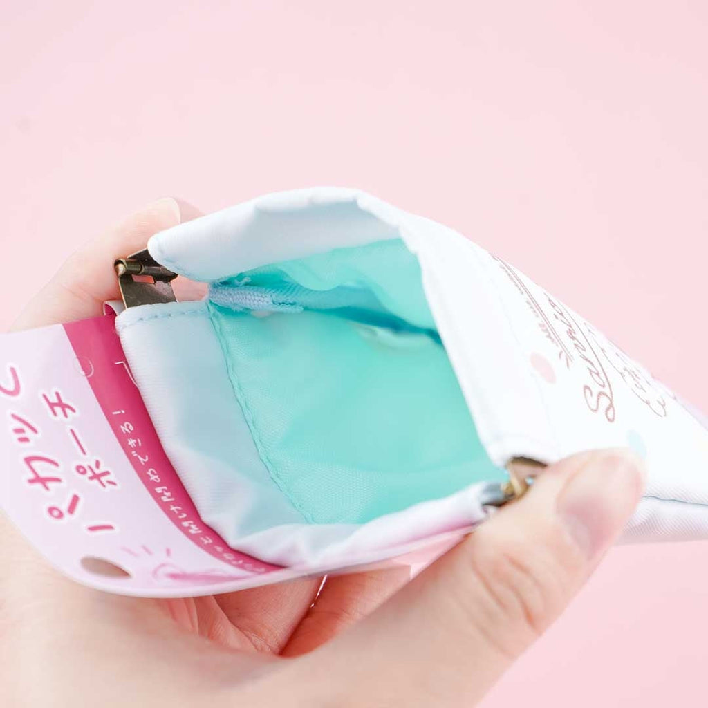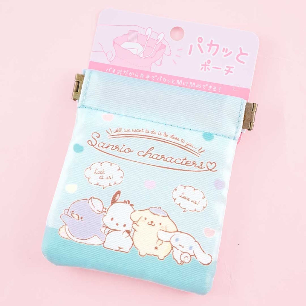 This kawaii pouch is illustrated with prints of Tuxedosam, Pochacco, Pompompurin, Cinnamoroll, and lots of hearts. It features a spring mouth opening that you can simply open and close with one hand. Use this convenient pouch to store your earphones, keys, and accessories.